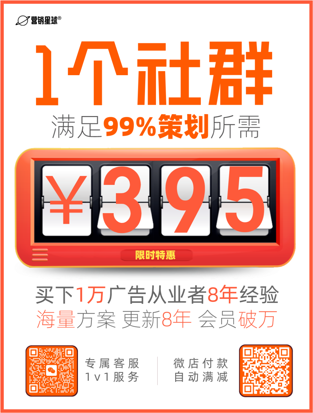 营销星球™白金社群,SINCE2016,社群成员破万。所有公众号内容都在社群分享!限时¥395/年!加入营销星球™白金社群,让你的营销之路更为畅通!