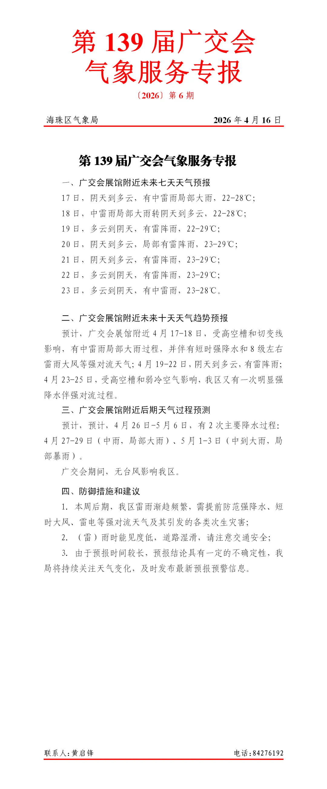 第139届广交会气象服务专报
