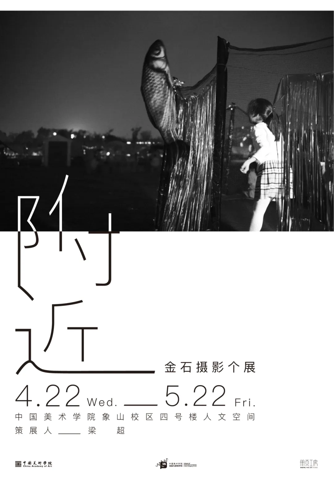 动画与游戏学院动画系教师金石的摄影展《附近》将于2026年4月22日开始在中国美术学院象山中心校区四号楼一楼举行,策展团队选取了金石近年的五十余幅黑白摄影作品,将进行为期一个月的展览。