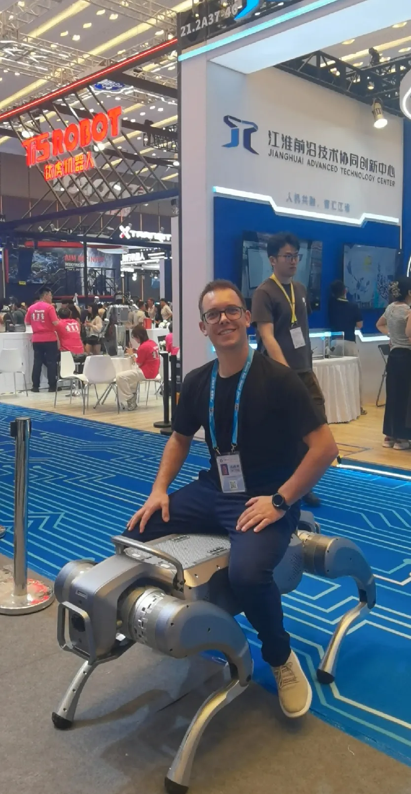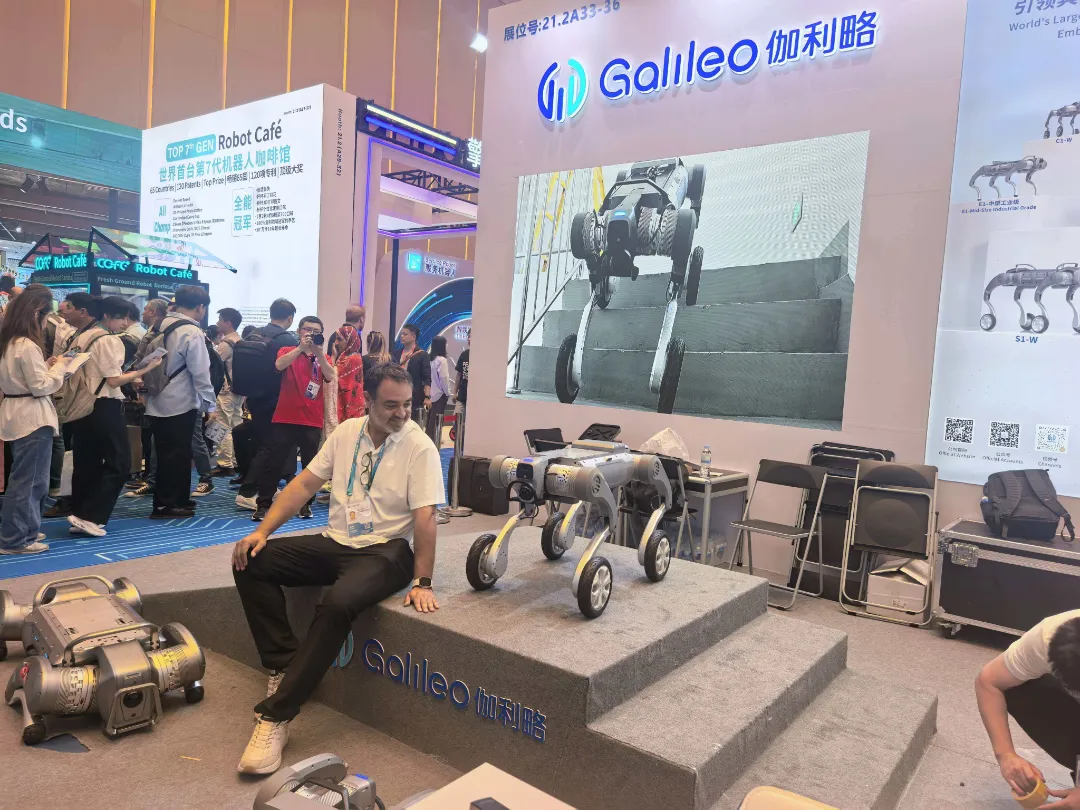 展台上,三款智能“机器狗”同步进行动态演示,凭借灵活敏捷的步态、精准的环境感知与强大的负载能力,吸引了大批境外采购商驻足洽谈。公司负责人表示,伽利略所有产品均实现外观、结构、电机关节、AI算法全链条自主研发,核心技术100%自主可控。