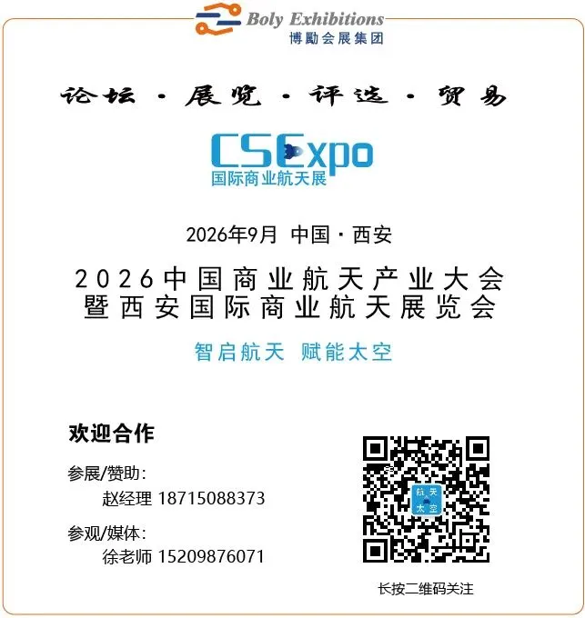 在各级部门机构的指导下,“CSE2026 西安国际商业航天大会暨展览会 ”将于2026 年9月在西安国际会展中心举办,汇聚国家相关主管部门、军工集团、科研院所、航天企业和国际宇航组织的领导以及知名专家学者共襄盛会,全面展示宇航前沿技术,深入探讨航天未来愿景,广泛推动世界航天领域的深度合作。同期还将围绕相关主题举办数场相关活动,倾力打造集学术交流、产业盛会、前沿展示、文创体验于一体的国际化、专业化、市场化的交流合作平台。