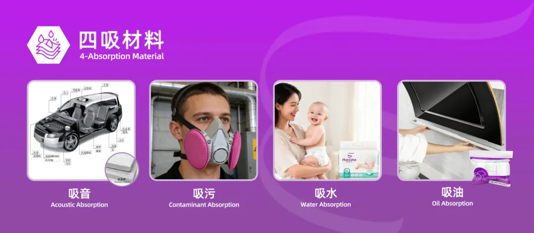 自主研发吸音、吸水、吸油、吸废气四吸功能材料,成功打破国际技术垄断: