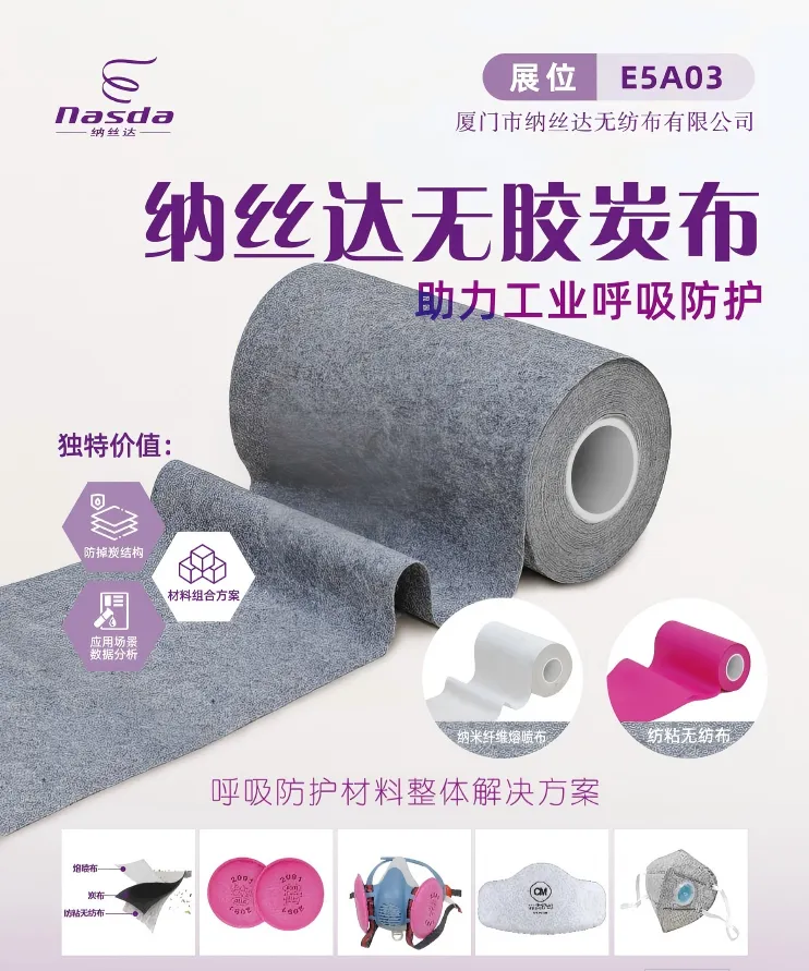 作为国内无胶炭布开创者、国家高新技术企业,厦门市纳丝达无纺布有限公司携全系列高性能防护材料重磅亮相,凭借硬核技术与创新产品,成为本届展会备受瞩目的材料科技亮点,专业实力收获行业高度认可!