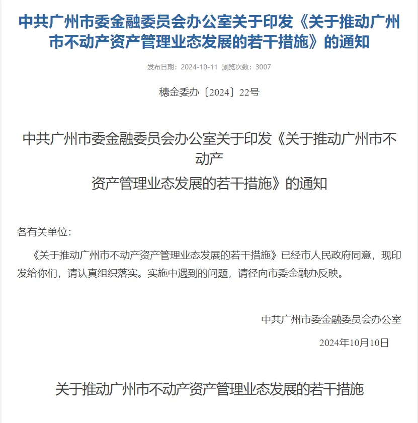 在政策层面,广州已出台《关于推动广州市不动产资产管理业态发展的若干措施》,全力构建不动产资产管理生态体系。