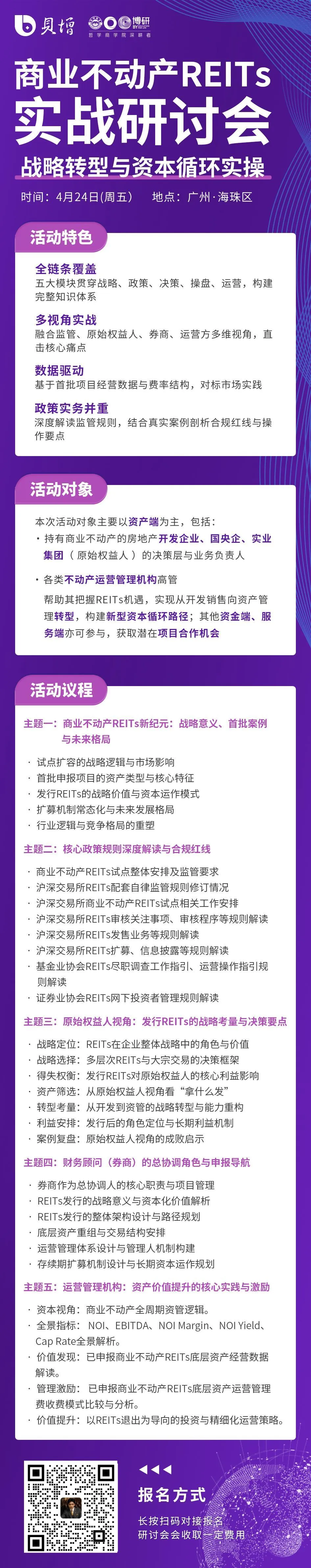 这门课聚焦产业园REITs最现实的问题:如何研判底层资产质量?如何穿越估值周期?如何构建真正有韧性的运营体系?欢迎扫码了解详情,在产业变革的关键窗口期,先人一步,看清底牌。