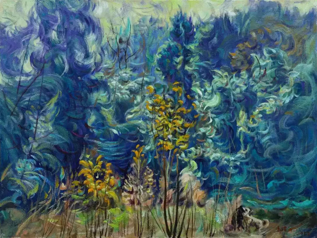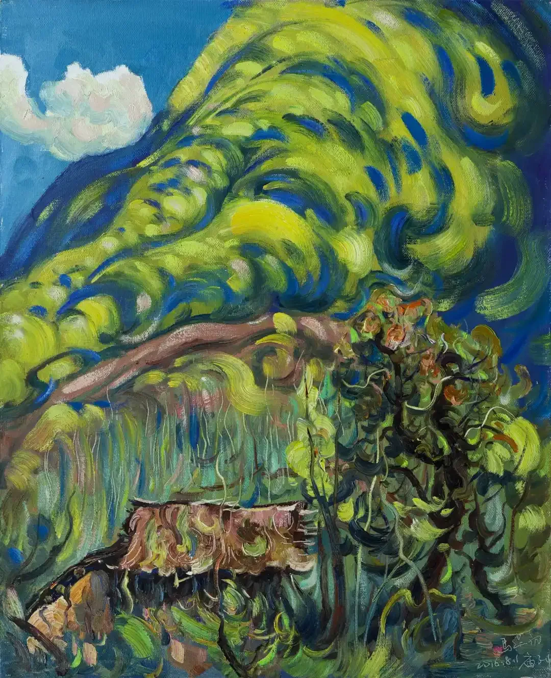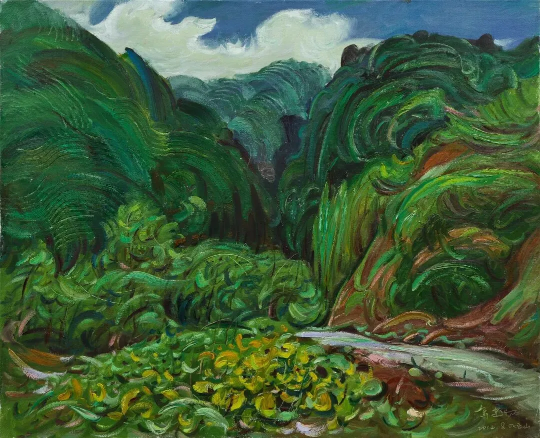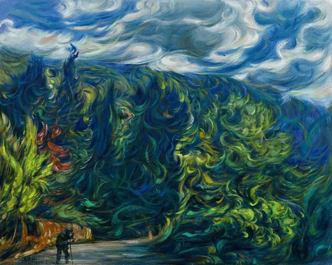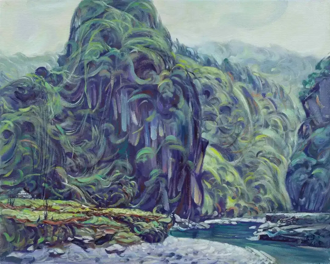 他以西方油画材质,承载中国山水的气韵与风骨;以奔放狂肆的现代笔触,书写东方美学的雄浑与诗意。作品既有西方表现主义的激情张力,更深植中国传统山水画的意境与哲思,形成他独一无二的艺术标识 —— 厚重、苍茫、热烈、鲜活,是当代中国油画山水创新的典范。
