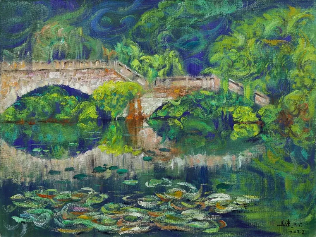 灵湖上的石拱桥 60×80cm 布面油画 2022