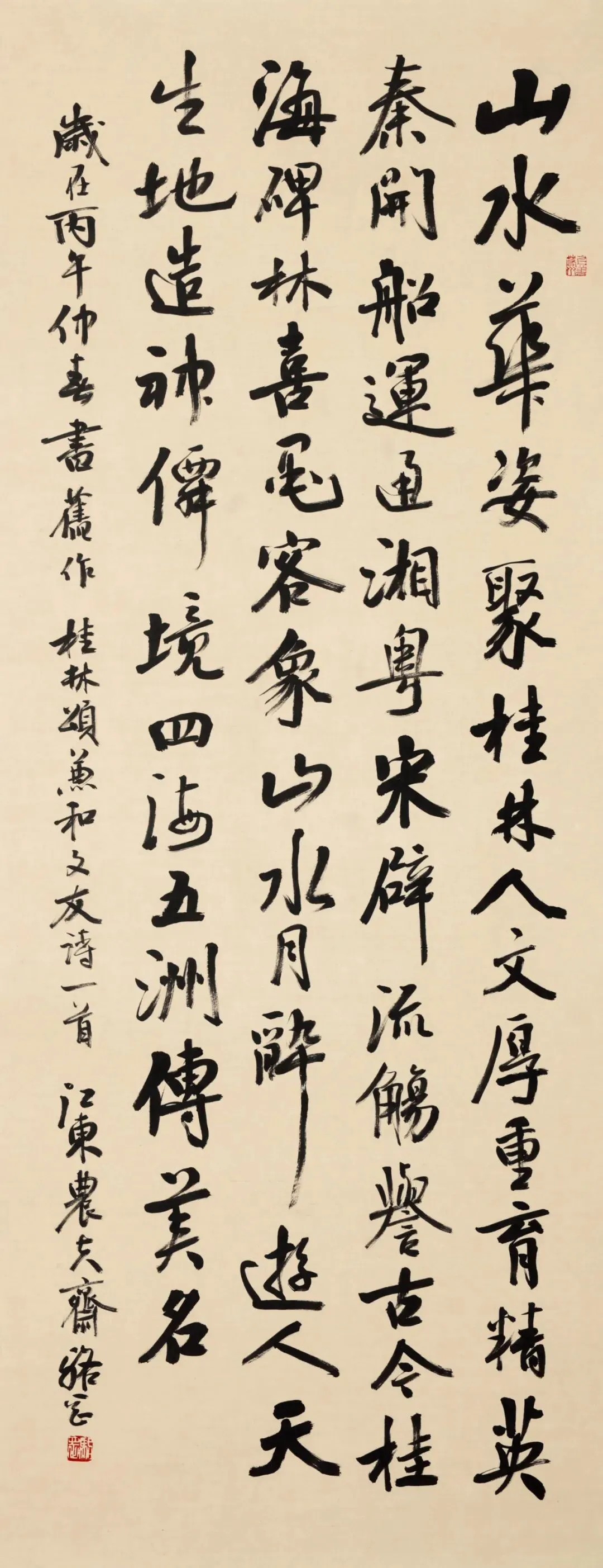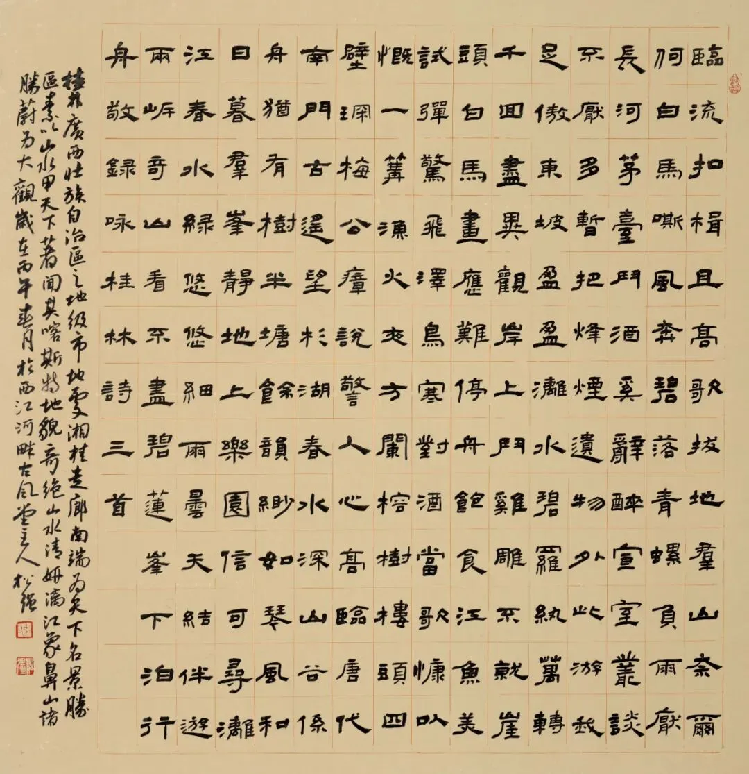 今逢此节,我们以翰墨为媒,邀您共赴一场漓江边的文化雅集——“欢歌三月三·翰墨漓江情”桂林山水诗词书法作品邀请展。我们以“欢歌三月三”为节庆底色,以“桂林山水诗词”为创作主题,设三个篇章:其一“甲天下·古韵流芳”,展历代吟咏桂林之名篇;其二“红旗漫卷·红色诗篇”,呈近现代桂林相关之佳作;其三“八桂新歌·当代创作”,纳新诗新词,咏今日山水。三种情怀,一脉文心,皆借书法之线条、墨韵、章法,再现桂林山水之美、诗词之韵、节庆之欢。