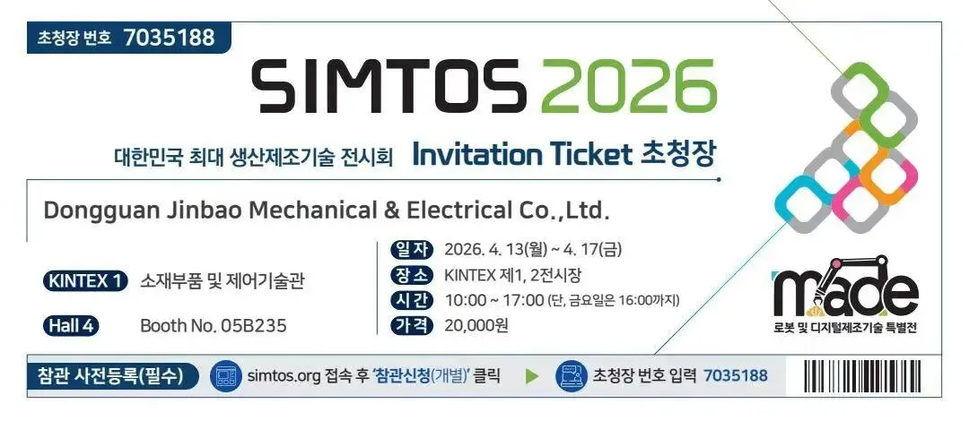 금보전원이 2026 한국국제공작기계전시회(SIMTOS)에 참가합니다. 이번 전시회는 저희 회사의 해외 진출을 다시 한 번 실현하는 자리로, 국내외 신규 및 기존 고객 여러분을 성심껏 초대해 현장에서의 교류와 협력을 통해 새로운 비즈니스 기회를 함께 모색해 드리겠습니다.
