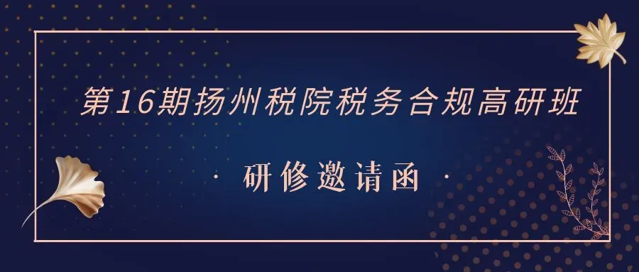 2025年9月16日-20日国家税务总局税务干部学院(扬州税院)将举办《第十六期“税务合规”高层次人才研修班》,我们很荣幸邀请贵单位董事长、总经理和财务总监、经理等相关人员参加。
