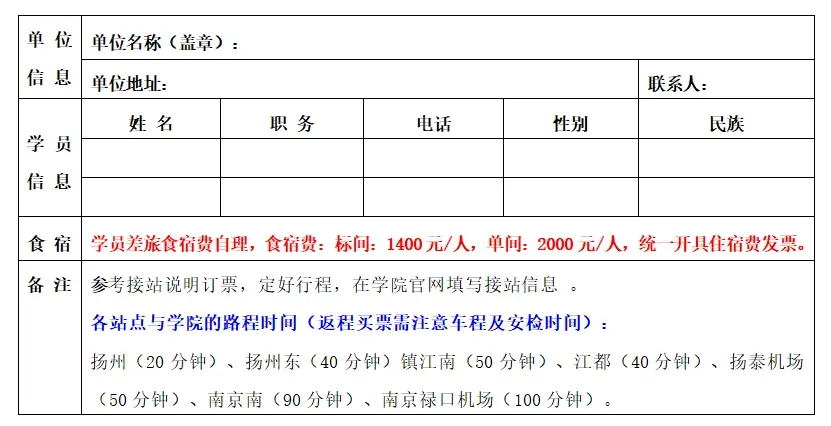 学院位于江苏扬州扬子江北路515号,学员可自行报到。同时,学院提供南京、镇江和扬州等三市机场、火车站的班车接送站服务。如需接站,请提前告知。需要接站的学员,订票的时候可以参照一下接站时间段。