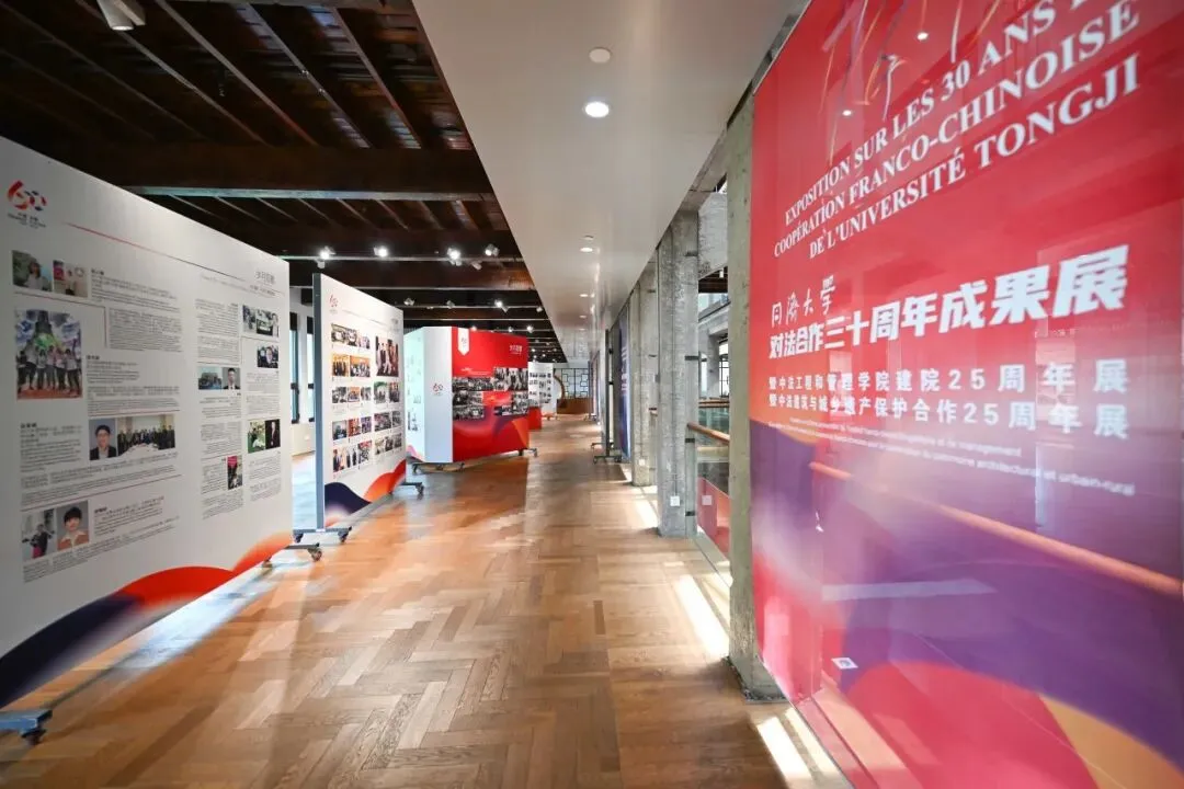 为庆祝中法建交60周年,同济大学建校117周年,特举办同济大学对法合作30周年成果展暨庆祝中法工程和管理学院建院25周年暨中法建筑与城乡遗产保护合作25周年展。本次中法合作系列展将展至6月1日。