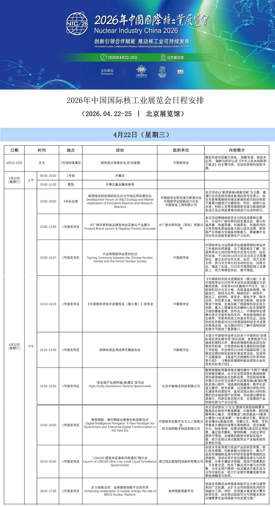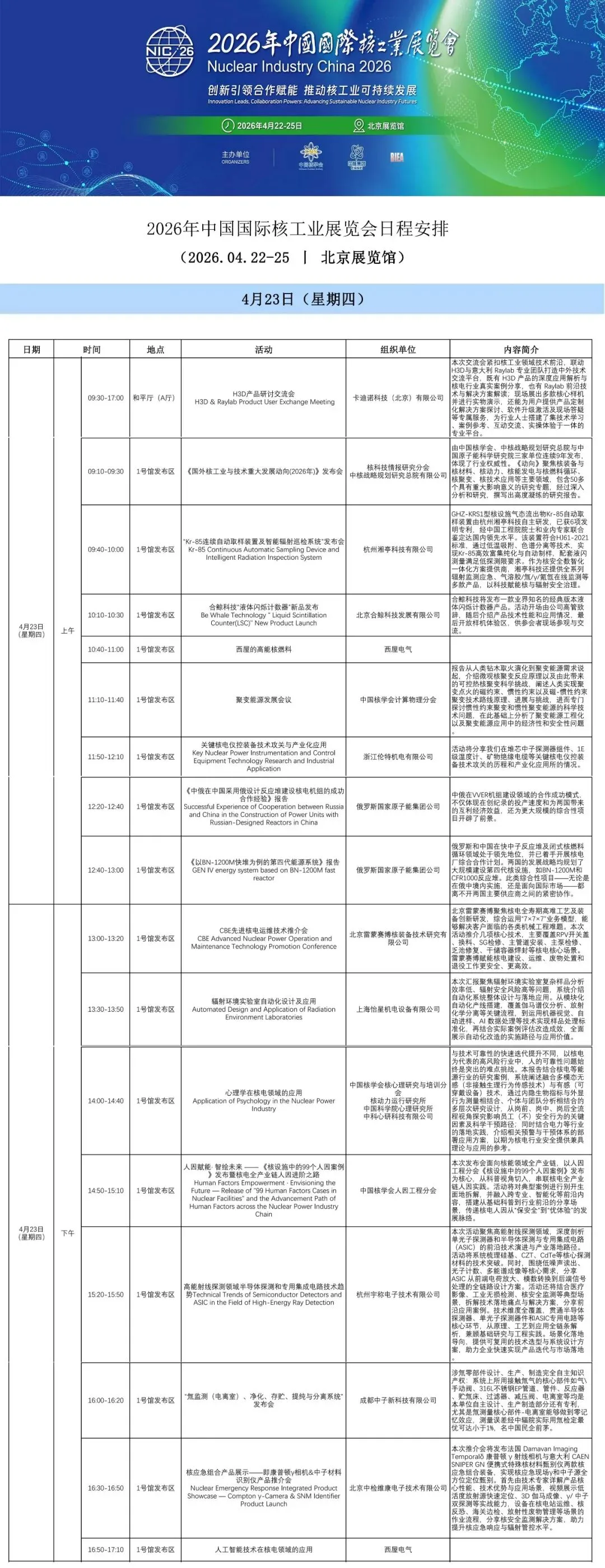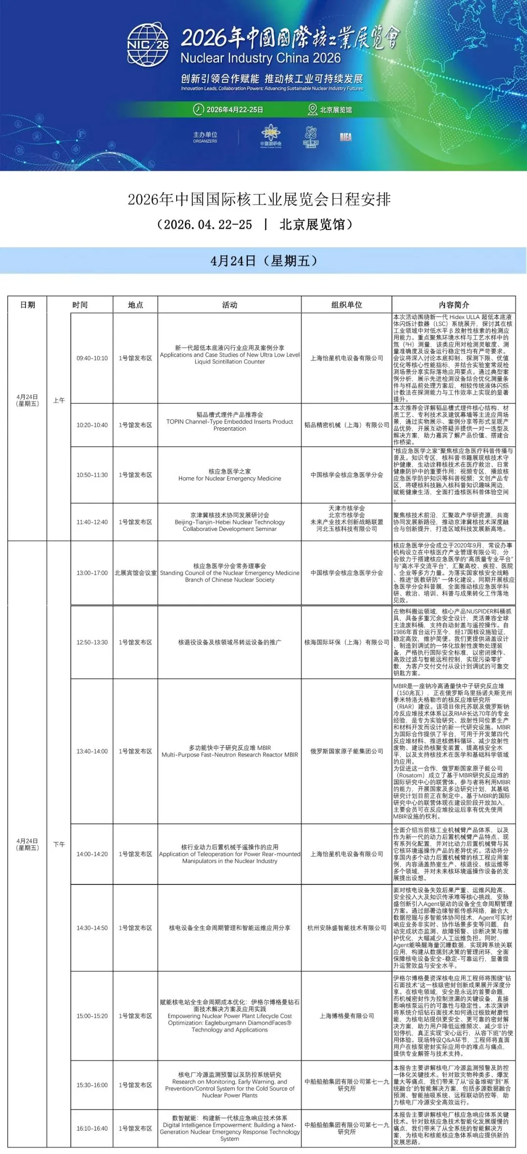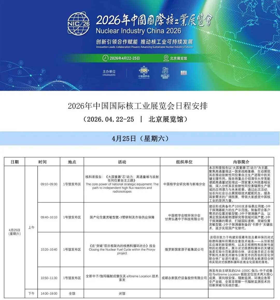 2026年中国国际核工业展览会日程安排