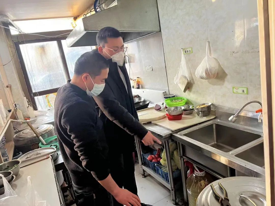 执法人员查看了相关经营主体的营业执照、食品经营许可证、并对从业人员健康证进行逐户逐项检查,确保证照齐全,无超范围经营。执法人员现场对外卖餐饮单位的食材存放、餐饮具清洗消毒等情况进行了检查,并督促外卖餐饮单位严格落实进货查验制度、索证索票制度,确保进货渠道和食材安全。