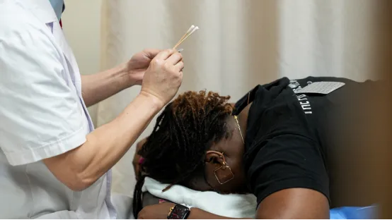 来自肯尼亚的Gladys在广东药科大学广州复星禅诚医院(广州新市医院)体验中医针灸