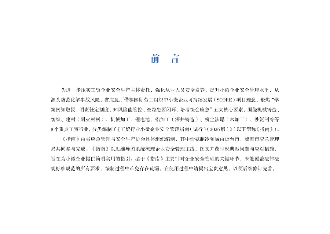 山东省应急管理厅《工贸行业小微企业安全管理指南(试行)》(2026年版)涉氨制冷,文末可下载