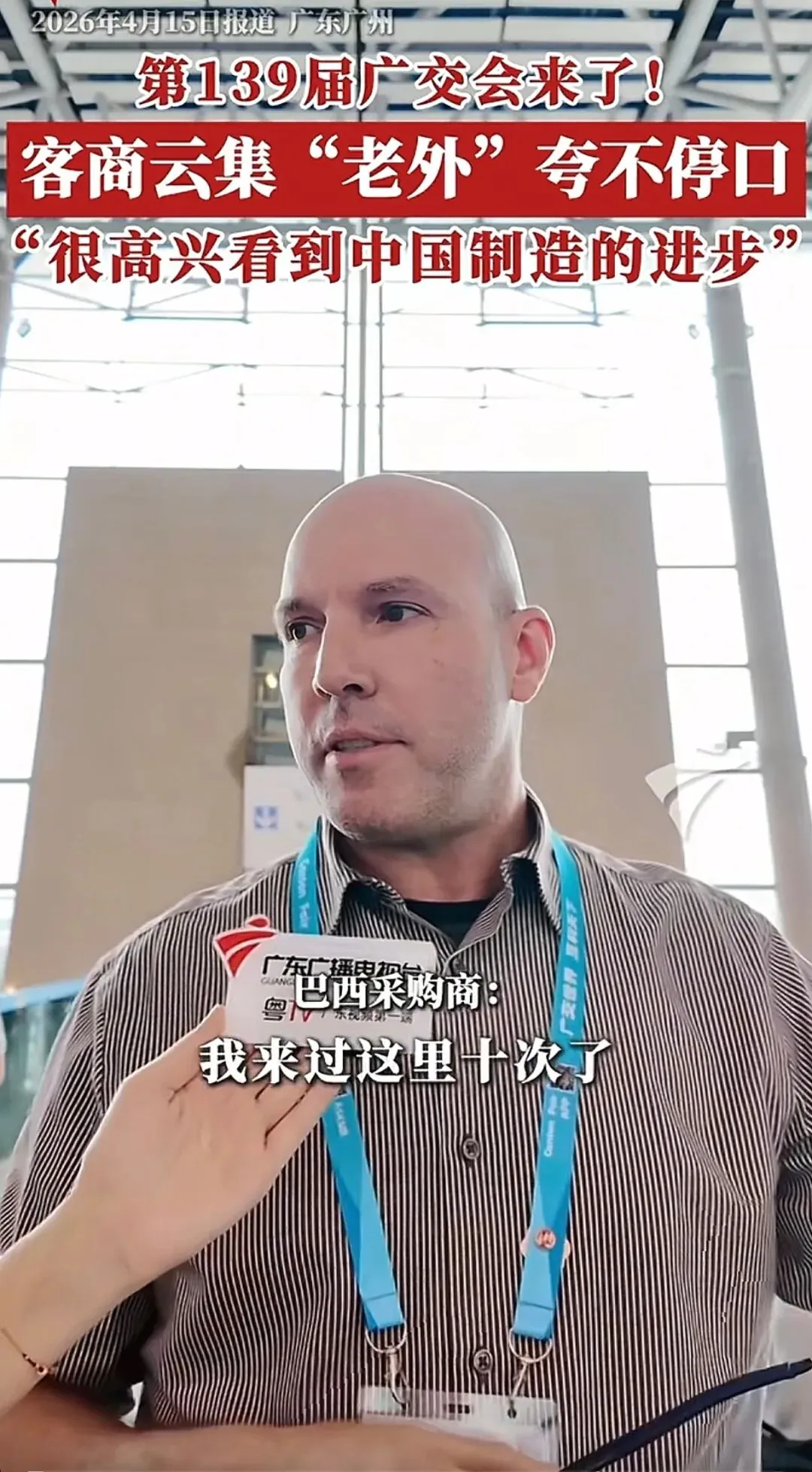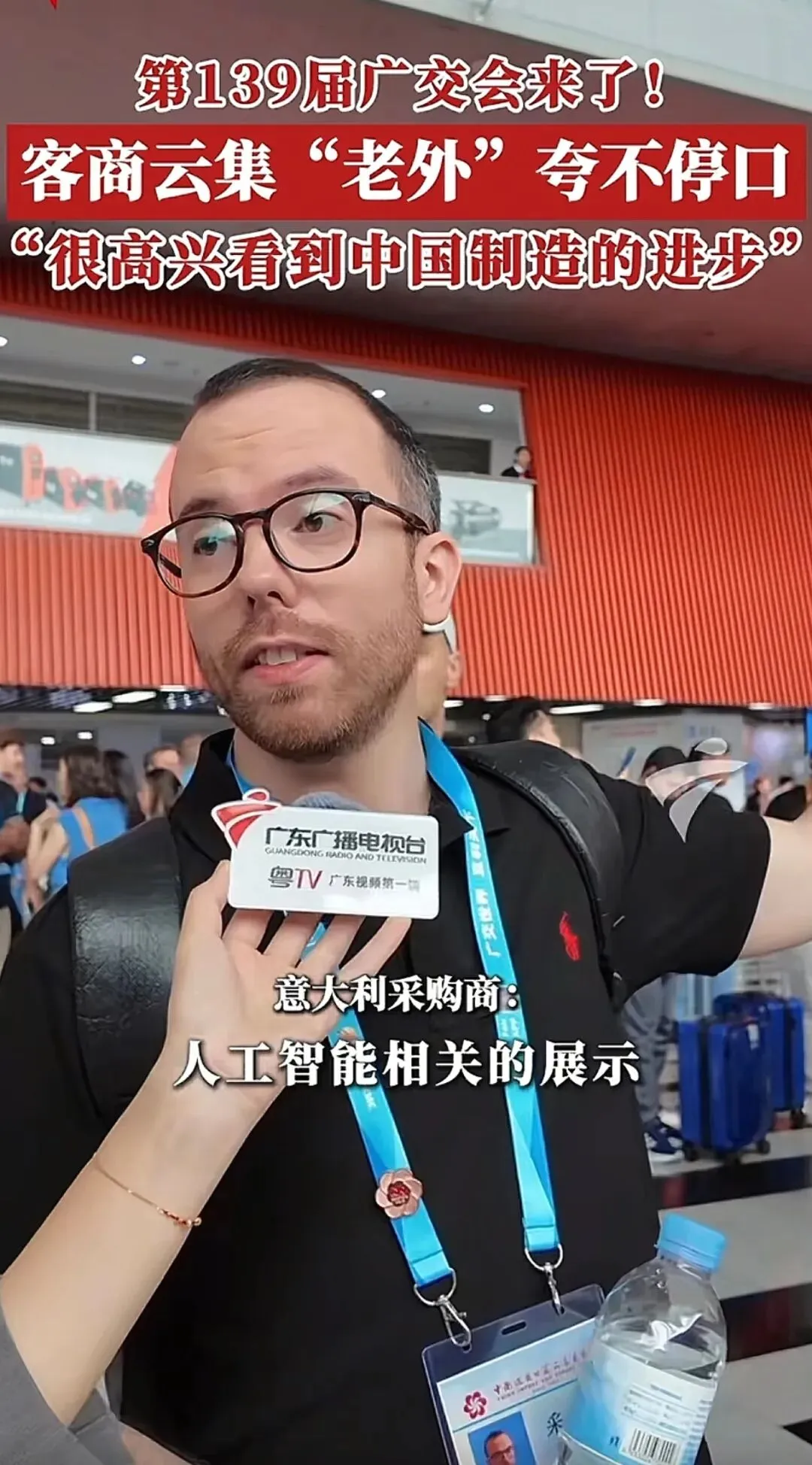 来自意大利的采购商也常年参与广交会,他表示今年的广交会相当不错,客商众多、产品丰富,还看到了人工智能相关的展示,“看到了很多创新,中国制造的进步非常好。”
