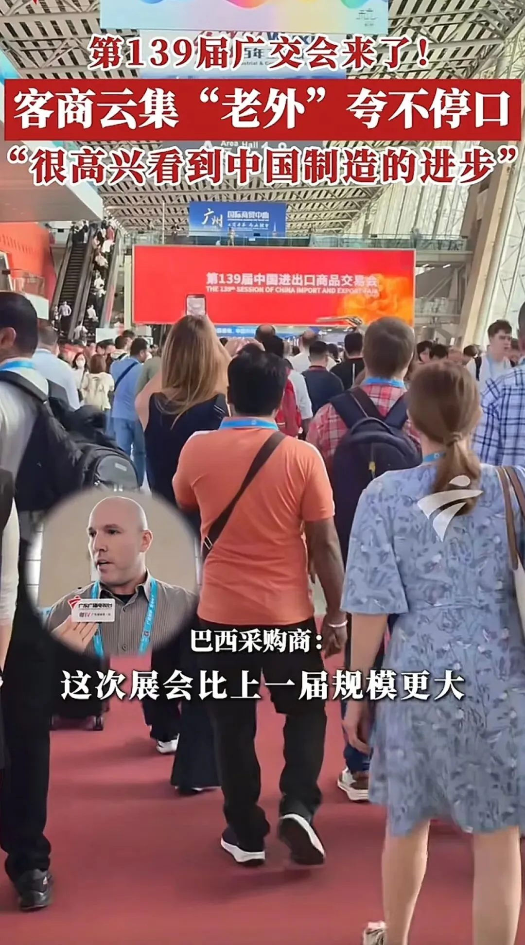 6月19日,第139届广交会火热开启,来自全球的客商云集广州,其中不少外国采购商更是对中国制造赞不绝口,直言“很高兴看到中国制造的进步”。