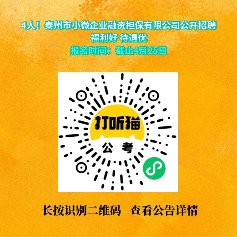 【泰州招聘】4人!泰州市小微企业融资担保有限公司公开招聘!