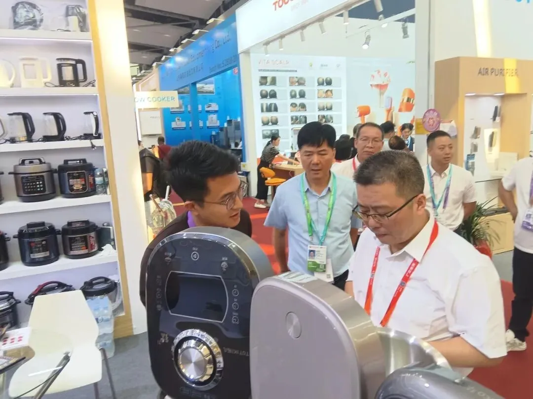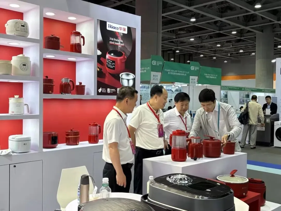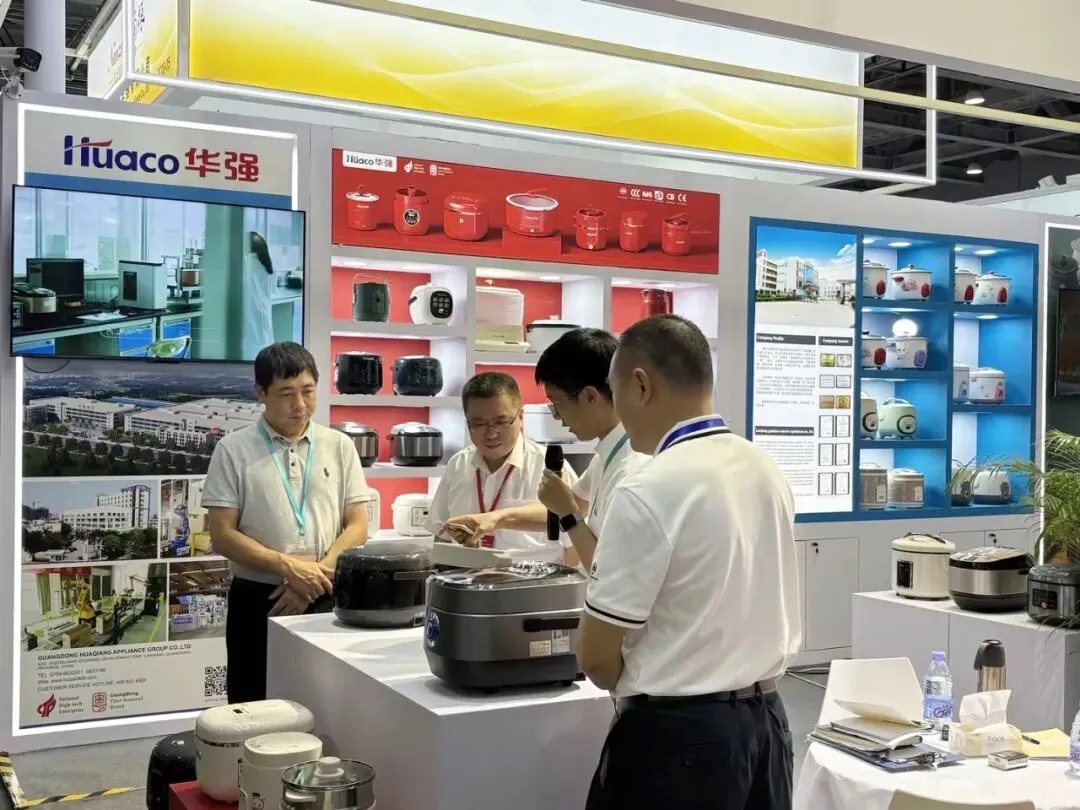在华强展位上,领导们在众多新品中率先关注到华强的ICF4088K1智能电饭煲和PY2008智能电压力锅,并细致地询问了解两款产品的工艺流程、研发投入、产品卖点、投入市场的反响等情况。