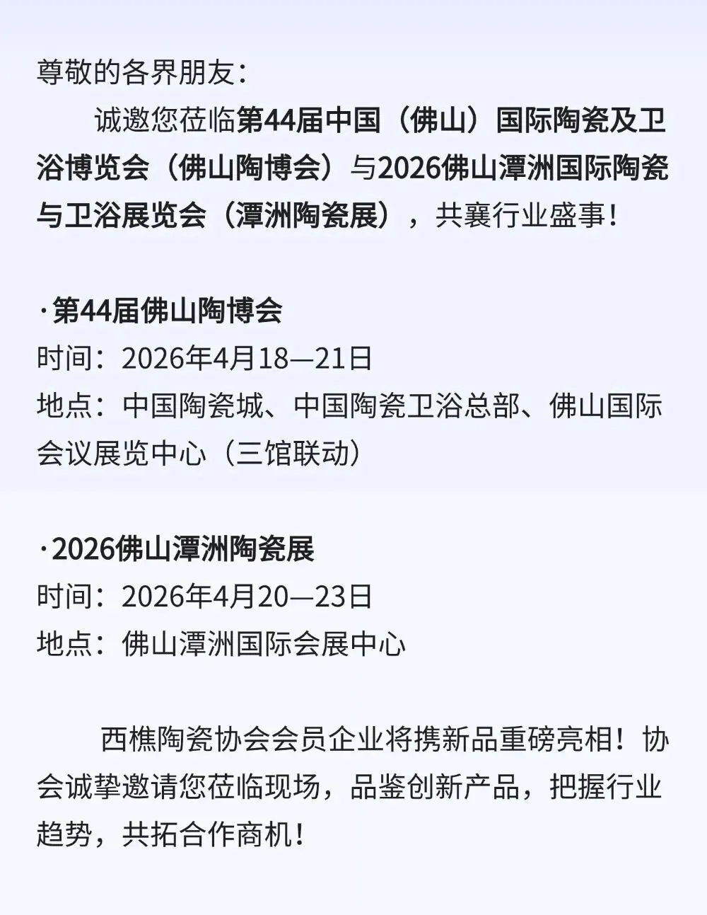 【展会邀请】第44届佛山陶博会、2026佛山潭洲陶瓷展