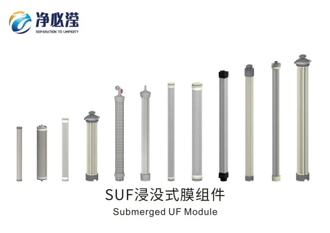 SUF系列膜产品是一种基于超低压膜分离与连续膜过滤技术相结合的新型分离工艺。该工艺采用开放式中空纤维膜组件,将膜直接浸没于待处理水的膜池中,在泵的负压抽吸与大气压力共同作用下,使水透过膜表面,并从中空纤维膜内侧导出,从而实现高效过滤与净化。