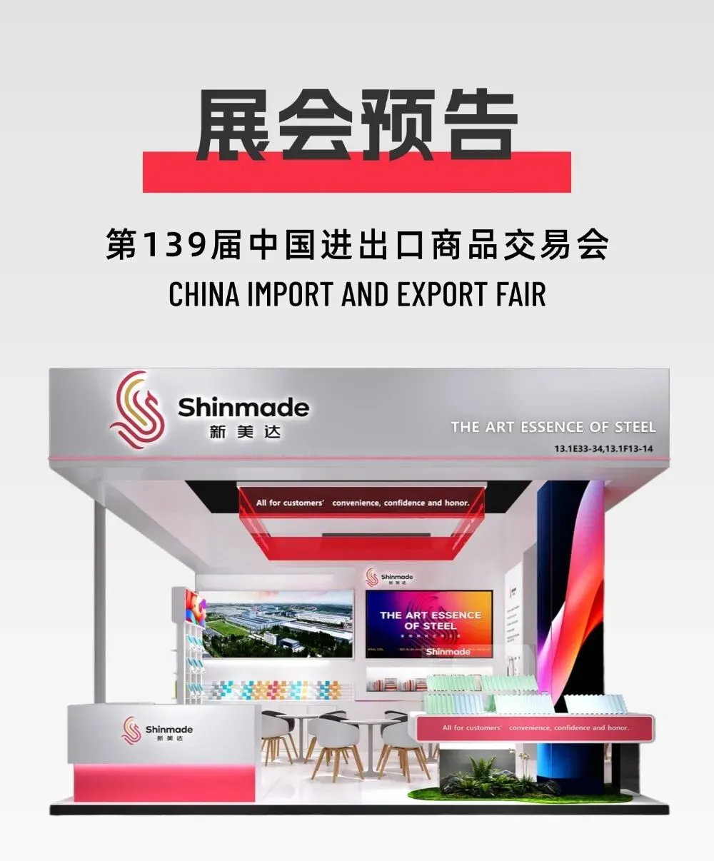 现场将展出新美达镀铝锌钢板、锌铝镁板、高端彩涂钢板全系列主力产品,覆盖海外主流建筑屋面、墙面围护、钢结构工程、畜牧养殖、沿海基建等高需求场景,展品数量与规格创历届新高。