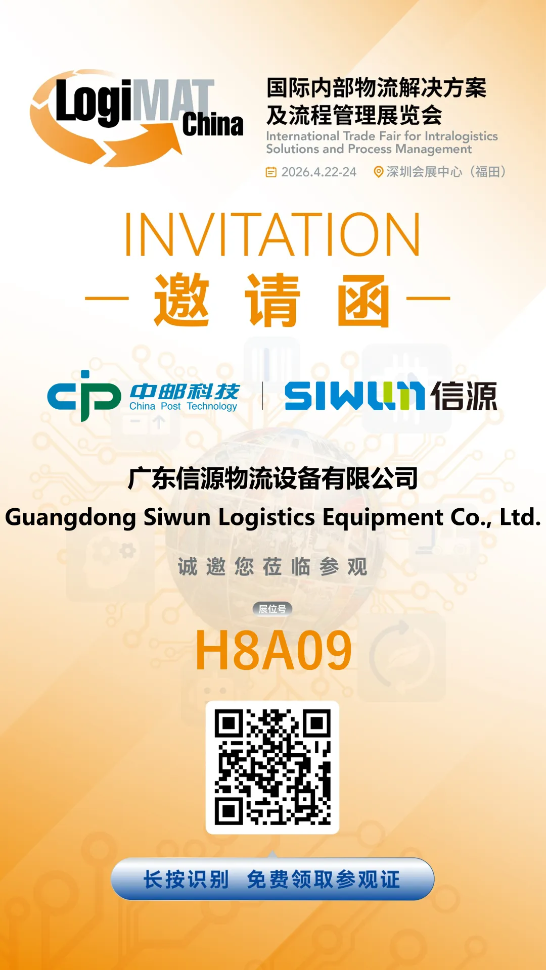SIWUN信源诚挚邀您4月22日-24日,莅临深圳深圳会展中心(福田区)国际内部物流解决方案及流程管理展览会(LogiMAT China),期待在8号馆的A09与您相遇,共探数智物流新风向,共启行业发展新机遇 。