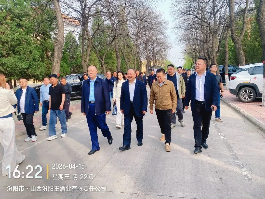 4月15日,郑州酒类行业协会会长、河南酒商联盟理事长王烁,郑州酒类行业协会秘书长王见宾、副会长张金献、高海波、党俊涛等携协会会员企业代表组成参访团,莅临山西汾阳王酒业参观调研。