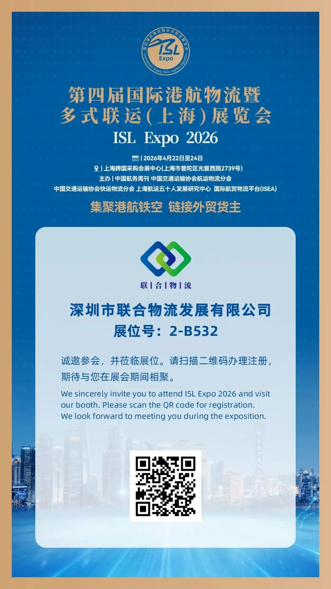 深圳市联合物流发展有限公司荣幸再赴盛会,展位号:2-B532。现场备好专属礼遇,诚邀各位莅临交流,我们期待与您相约上海,共话合作!