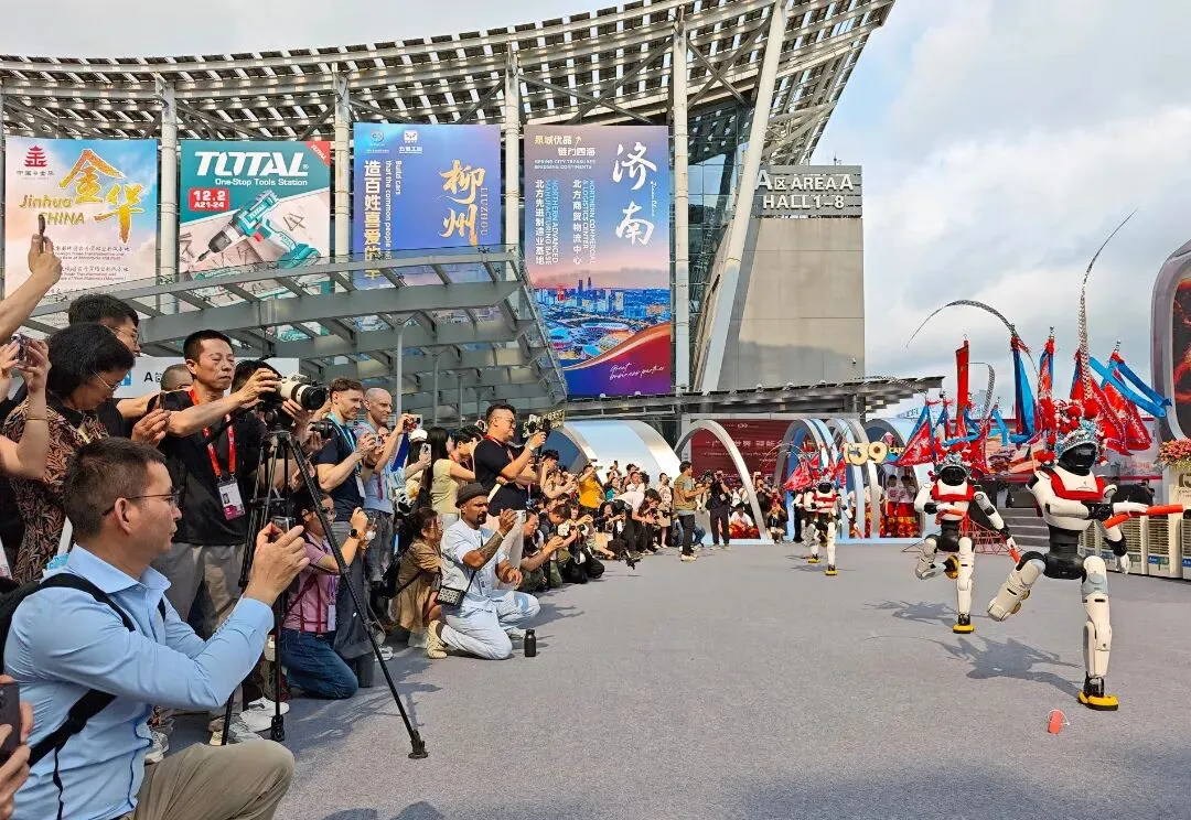 机器人英歌舞表演更是点燃现场气氛,不少客商驻足拍照,记录下精彩的瞬间。