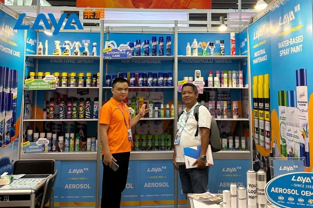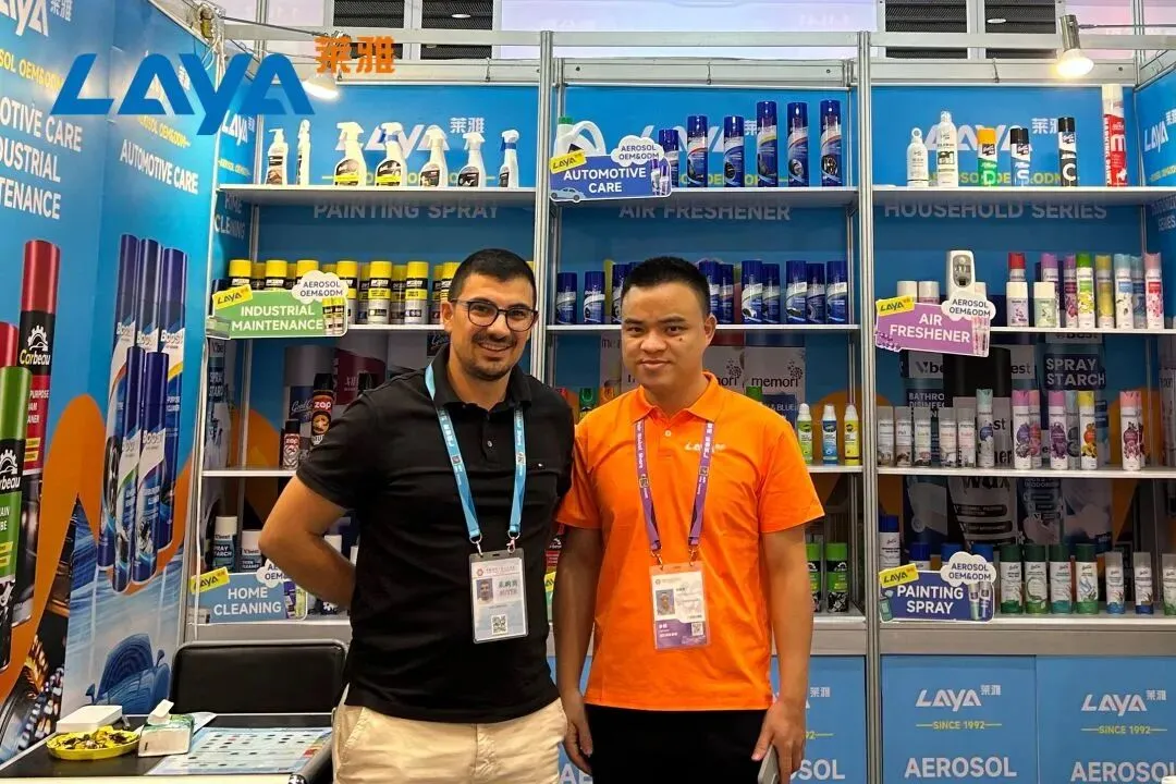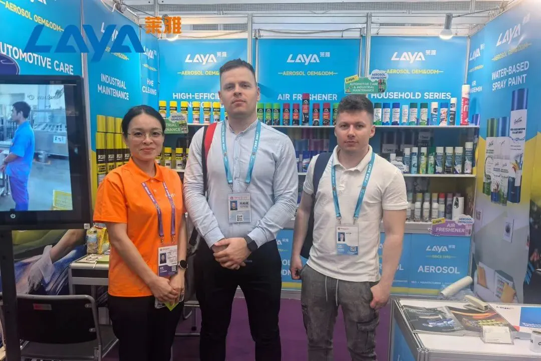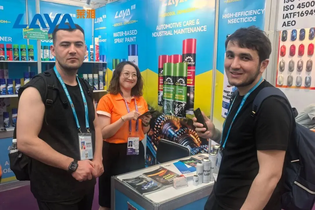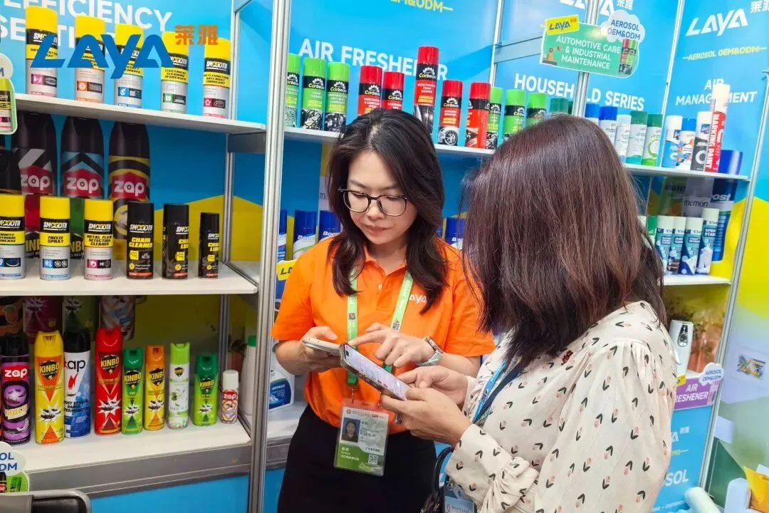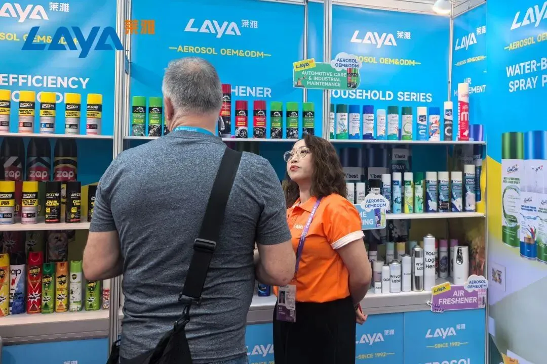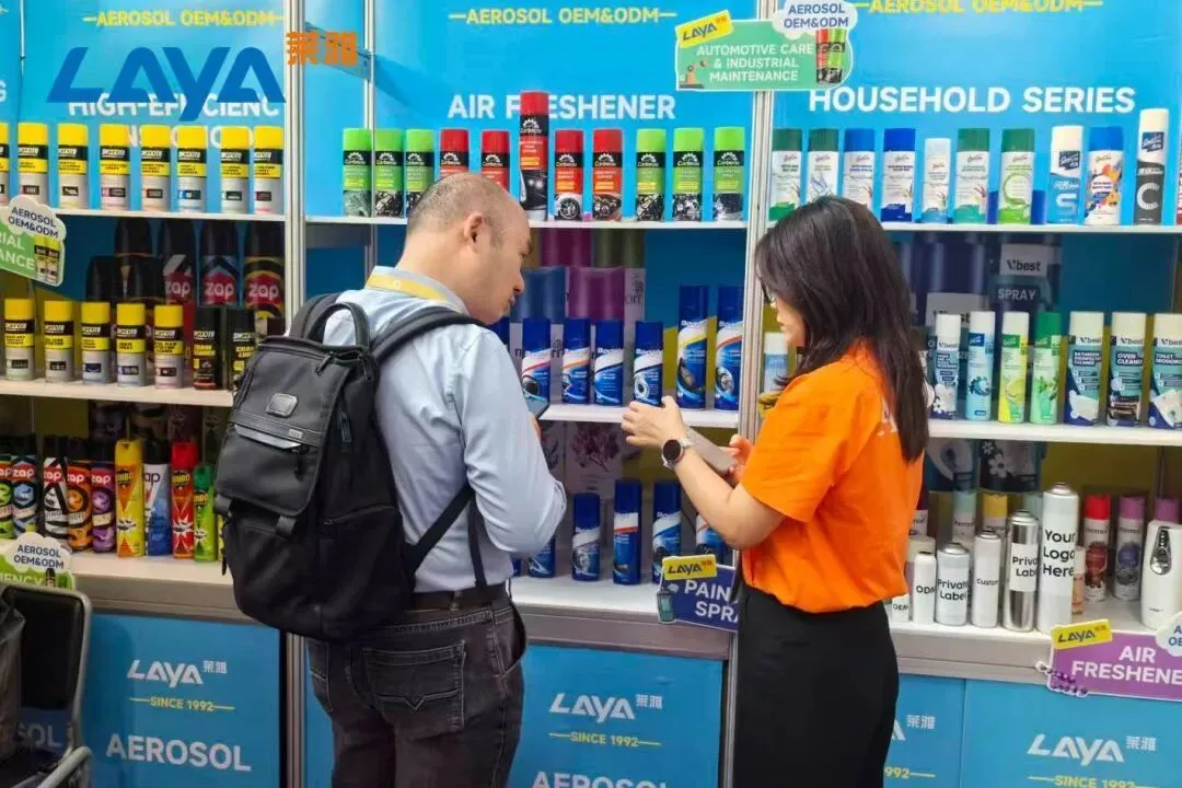 从汽车护理系列、工业精护系列、高效杀虫系列到装饰喷漆系列、家居清护系列、空气清新系列,莱雅的气雾剂展品覆盖多个应用场景,凭借安全环保的配方和稳定可靠的品质,获得了采购商的认可与好评。