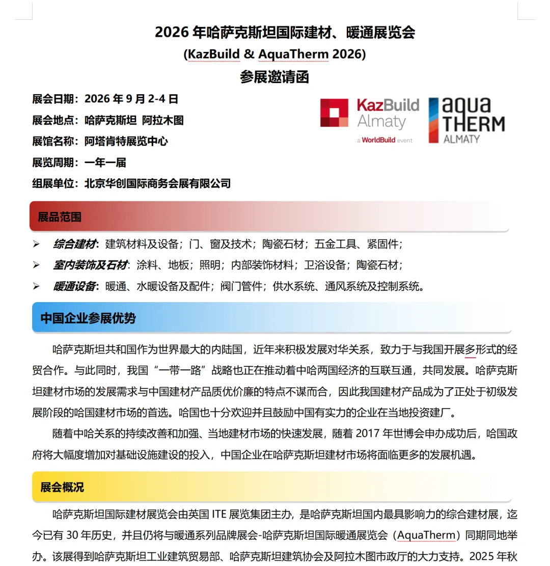 2026年哈萨克斯坦国际建材、暖通展览会