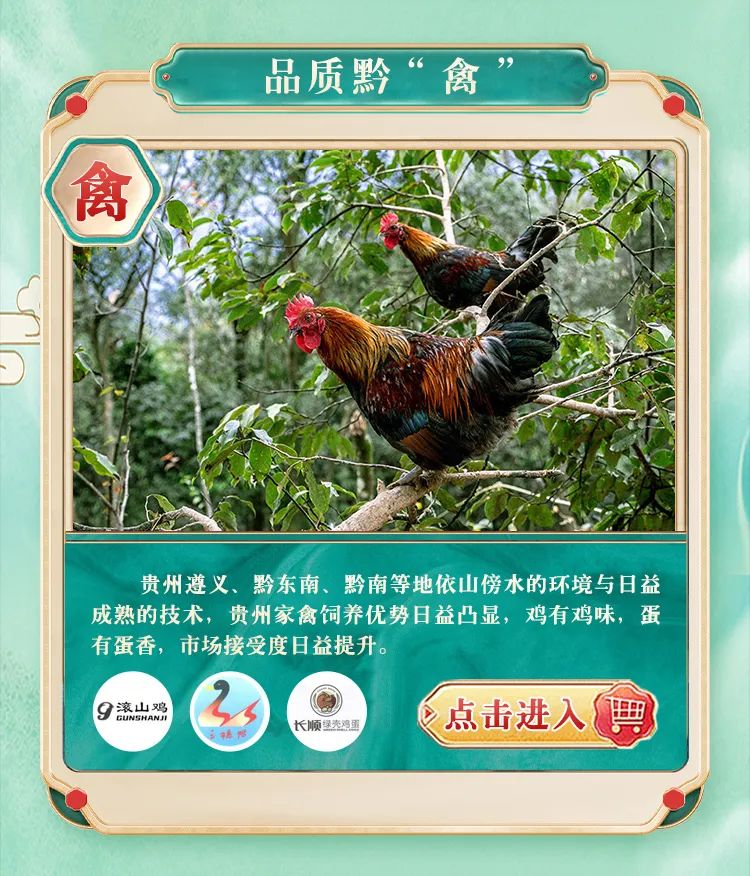 好禽代表:滚山鸡、三穗鸭、长顺绿壳蛋