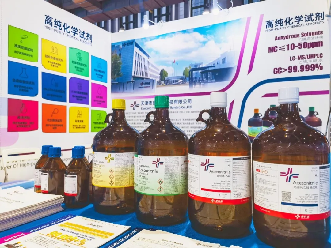 展会期间,康科德重点展出了液质联用试剂、超纯色谱级试剂、农残检测试剂、无水溶剂等核心产品。这些产品在高纯度、批次稳定性和杂质控制等方面表现优异,技术指标达到行业领先水平,实现了高纯色谱试剂的有效替代,受到众多制药企业、检测机构及科研院所专家的广泛关注。