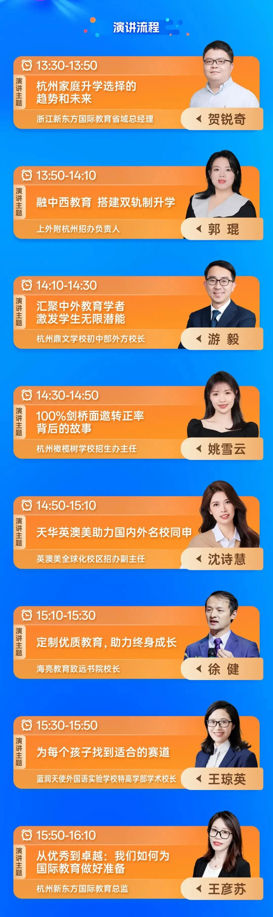 本次展会设有演讲厅,杭州家长关心的各类问题,都能在专家、名校长的演讲中找到答案。包括: