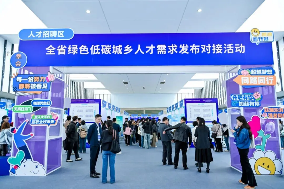 为推动行业人才供需高效对接,本届博览会联合省人社厅、教育厅,首次开展全省绿色低碳城乡人才需求发布对接活动,线上线下共101家企业参与,其中70家企业现场提供超1000个岗位,吸引应届毕业生和社会求职人员超2500人次,有力推动高质量充分就业。