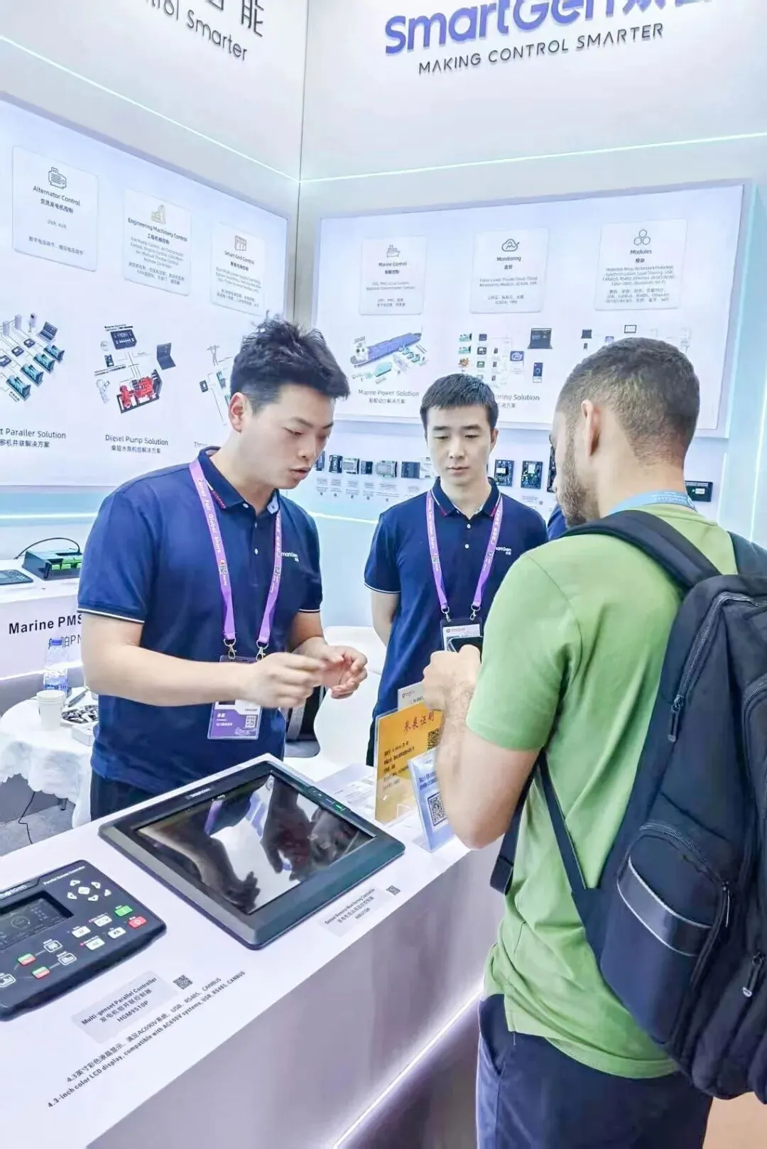 依托多年技术积淀,众智科技携多款新品亮相此次展会,包含升级款发电机组并联控制器HGM9510P、增程控制器HCU4320、智能电源切换控制系统IPTS80、混合能源控制系统HMU7、船用柴油发动机控制器HMC9170及远程监控大屏MMU10等,完整的产品矩阵及多场景应用解决方案赢得海内外客户广泛认可。
