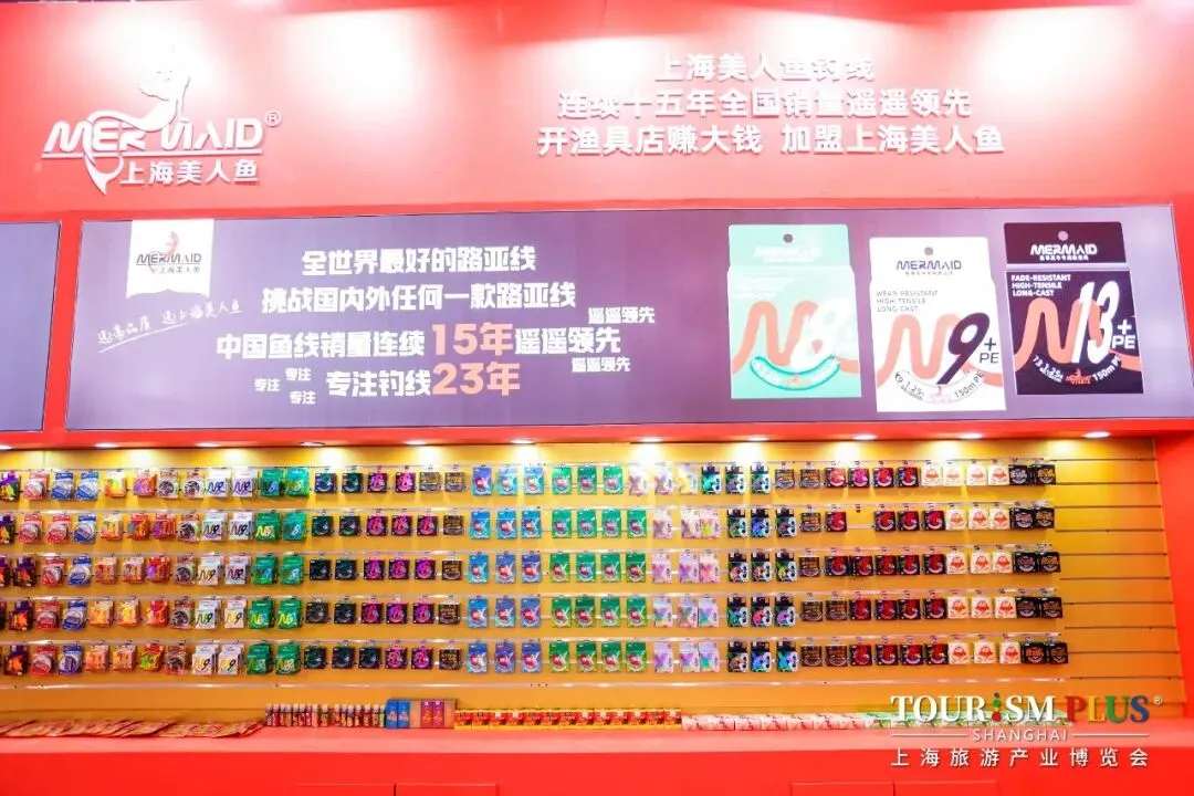 美人鱼(H3B10)专注钓线23年,中国鱼线销量连续15年领先。展示了“美人极”高端黑坑竿、轻量小综合竿王羽。