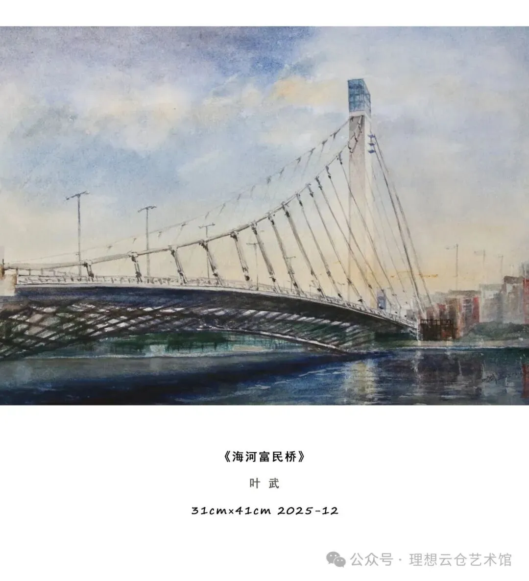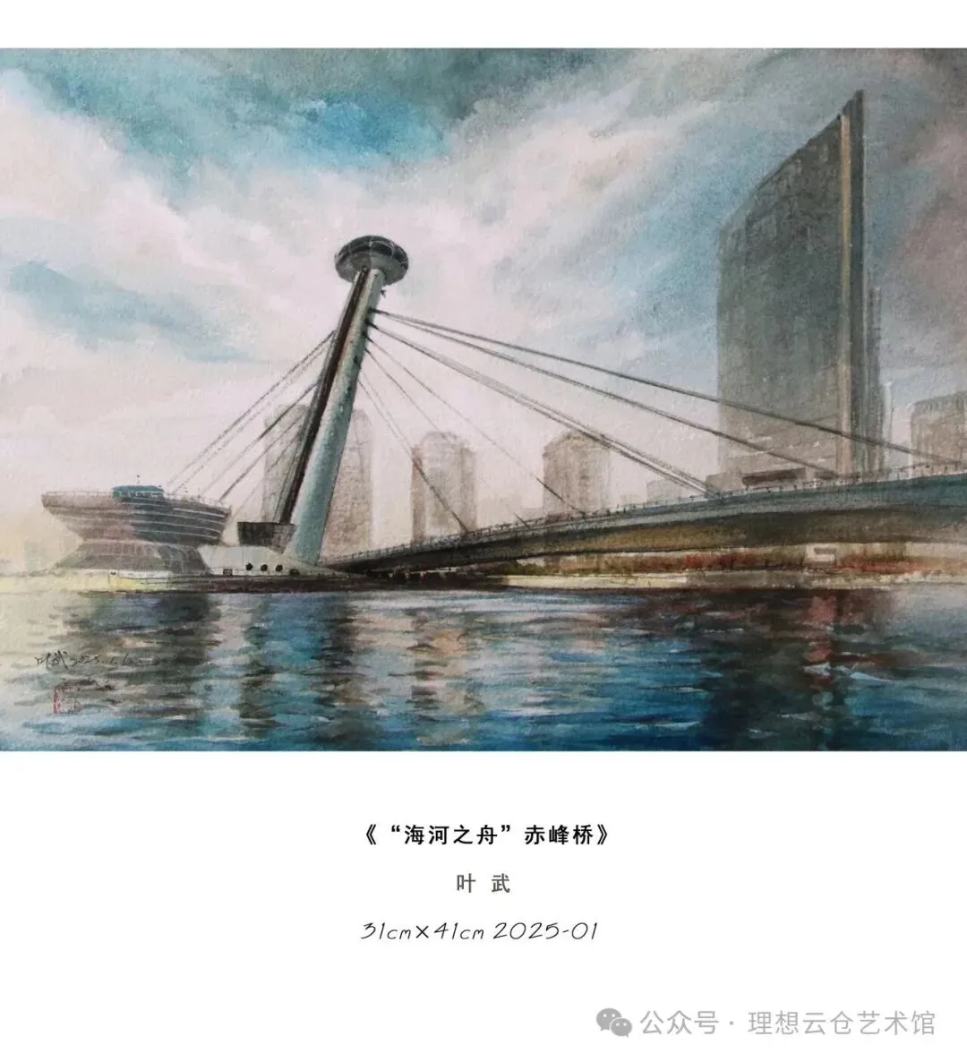 从百年历史的风貌建筑,到日新月异的城市地标;从海河两岸的桥梁风骨,到津城四季的烟火诗意,叶武将对天津这座城市的深厚情感、细腻洞察与独到理解,尽数凝于笔端。他以水彩独有的灵动与通透,褪去城市景观的浮华,留住时光沉淀的质感,让每一幅画作,都成为天津城市记忆的鲜活载体。
