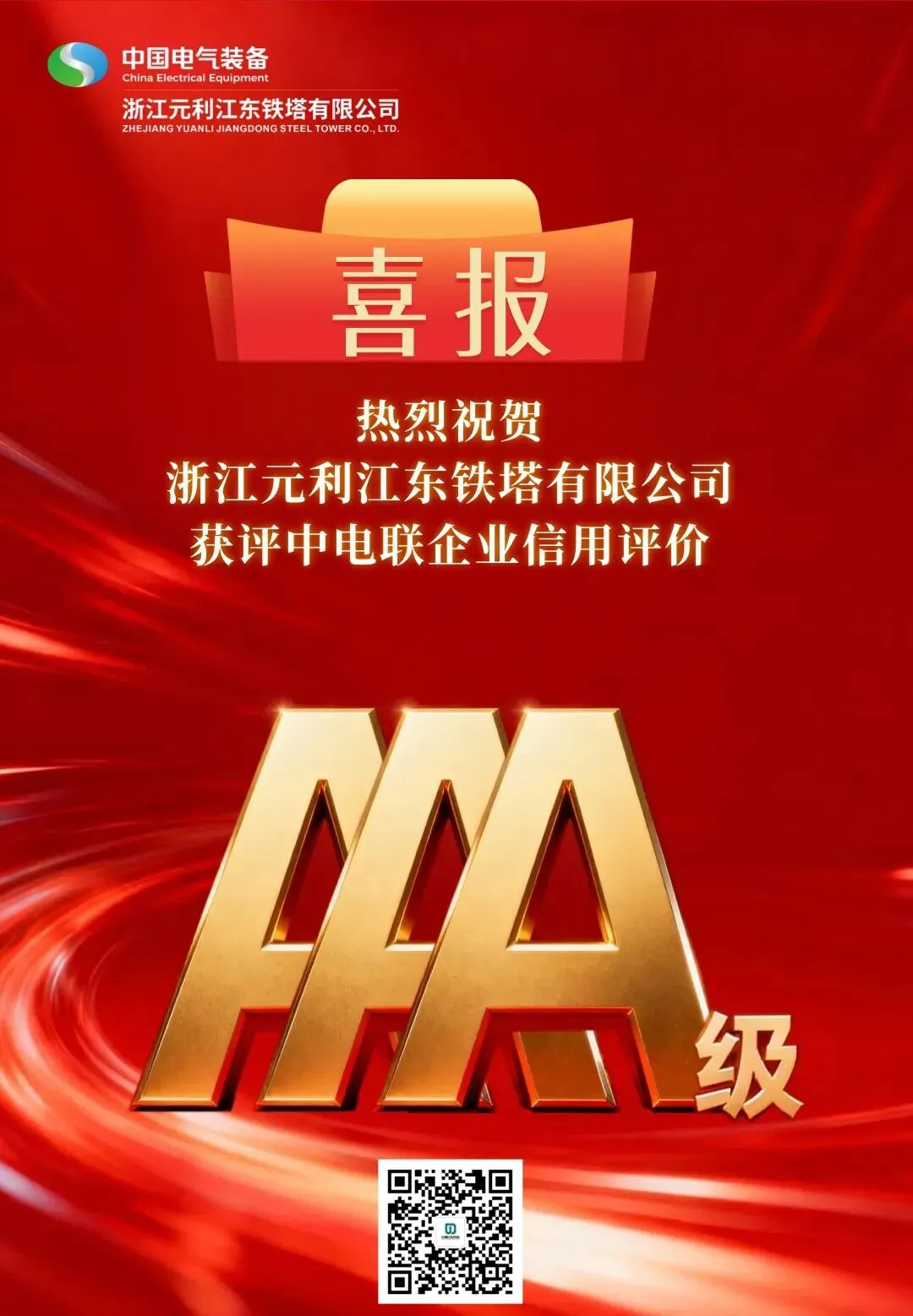 本次获得“AAA”级信用评价,为公司开拓市场、深化品牌形象注入强劲动能。未来,元利江东将继续用诚信经营赢得市场,以品质服务回馈社会,为服务国家能源战略积极贡献力量,“做世界上最好的铁塔”。