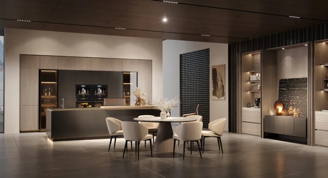 本届展会,索菲亚携睿界、菲凡逸境、科尔多Pro三大系列新品亮相。睿界打造开放式社交厨房,岛台错落、口袋门灵活切换;菲凡逸境融意式简约与东方四雅于一体,同步木纹工艺与高定美学;科尔多Pro以圆弧皮革工艺呈现悦己衣帽间。