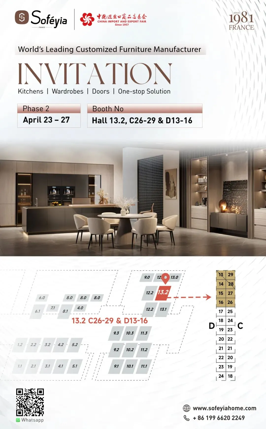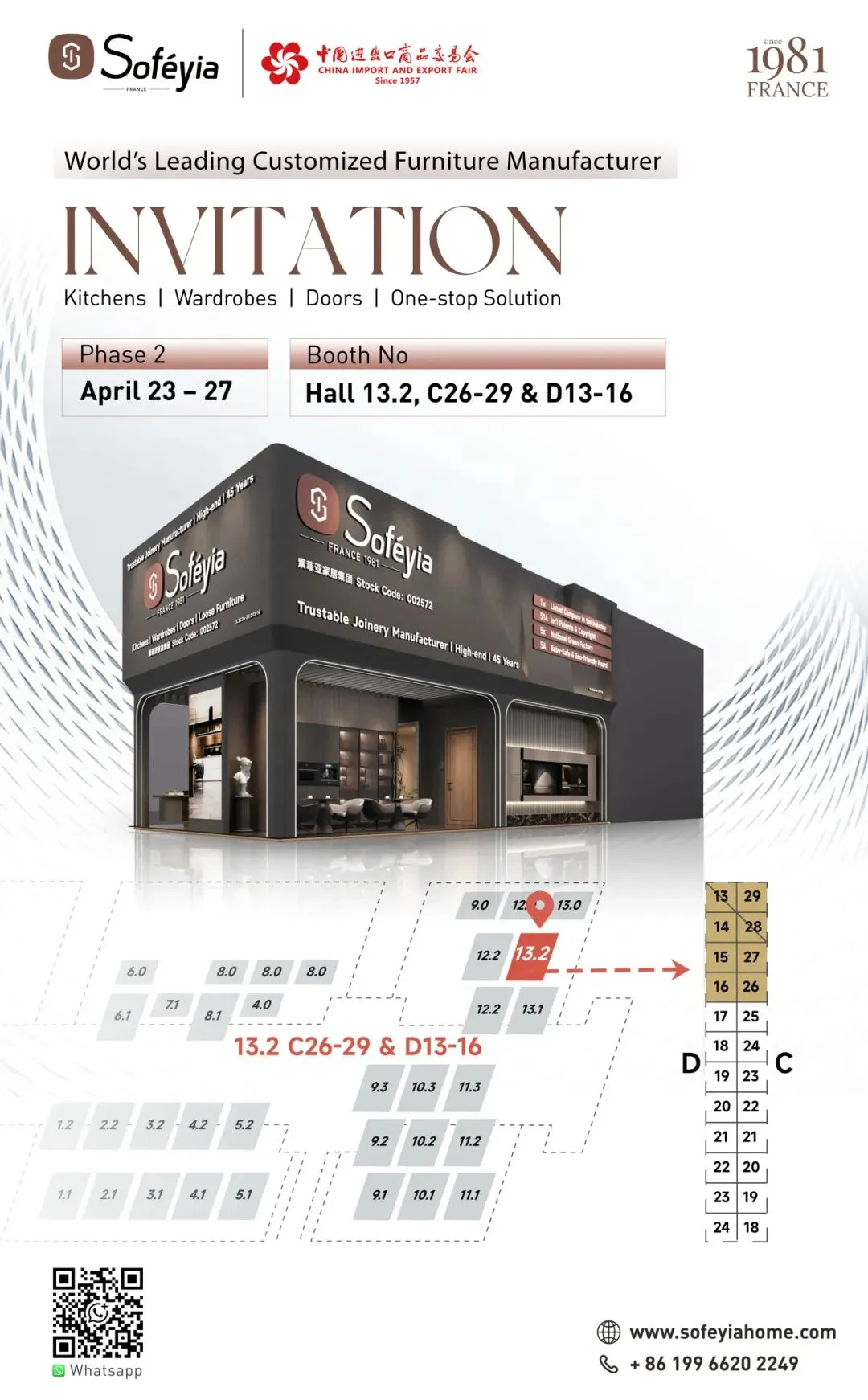 第139届广交会第二期即将开幕,索菲亚全体成员已整装待发。距离广交会仅1公里,我们打造了 4500㎡索菲亚全球展厅,诚挚邀请全球合作伙伴前来参观交流。无论您是采购商、设计师、房产商,还是寻找加盟项目的投资人,我们都欢迎您莅临索菲亚展位,面对面交流,共话商机。