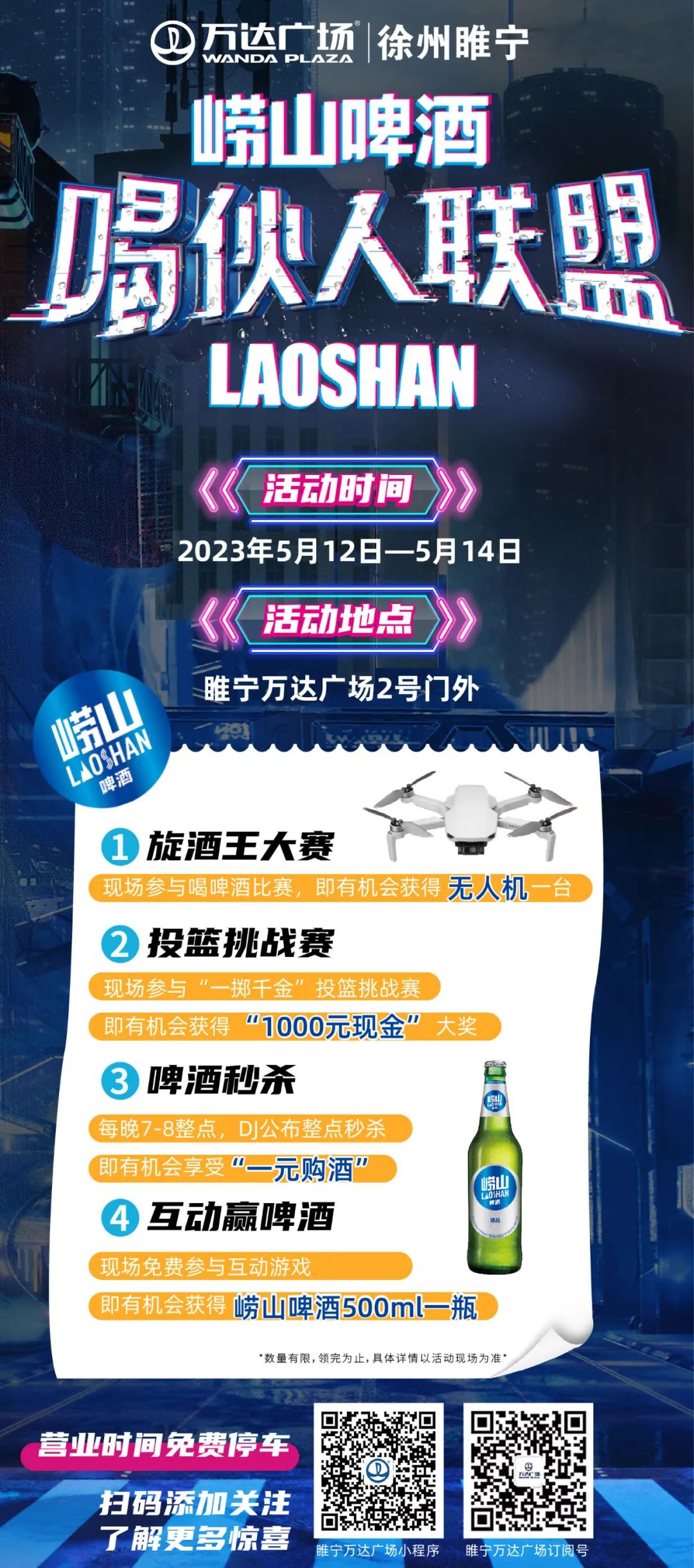 崂山啤酒,喝伙人联盟,5.12-5.14热力开旋!无人机、1000元大奖等你来拿~
