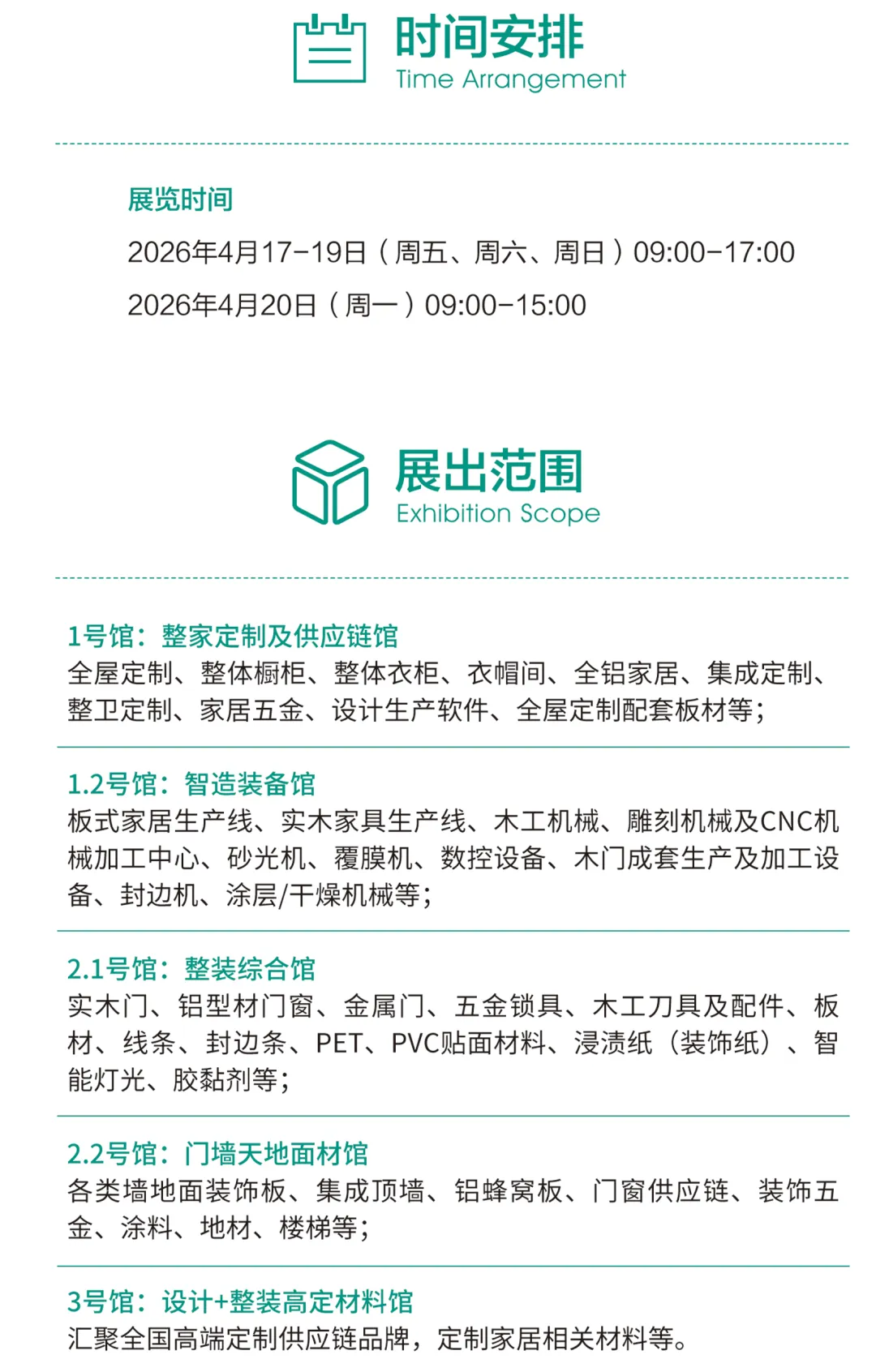 依托临沂本地木业产业链优势与国家政策导向,由中国木材与木制品流通协会、中国林产工业协会、山东福瑞德国际会展集团联合主办的第十届中国(临沂)全屋定制暨供应链展览会将于2026年4月17日-20日在临沂国际会展中心召开。本届展会以“发现”为主题,坚定秉持“整装大家居供应链优选平台”的核心定位,致力于为产业链上下游搭建高效、精准、高价值的对接桥梁。