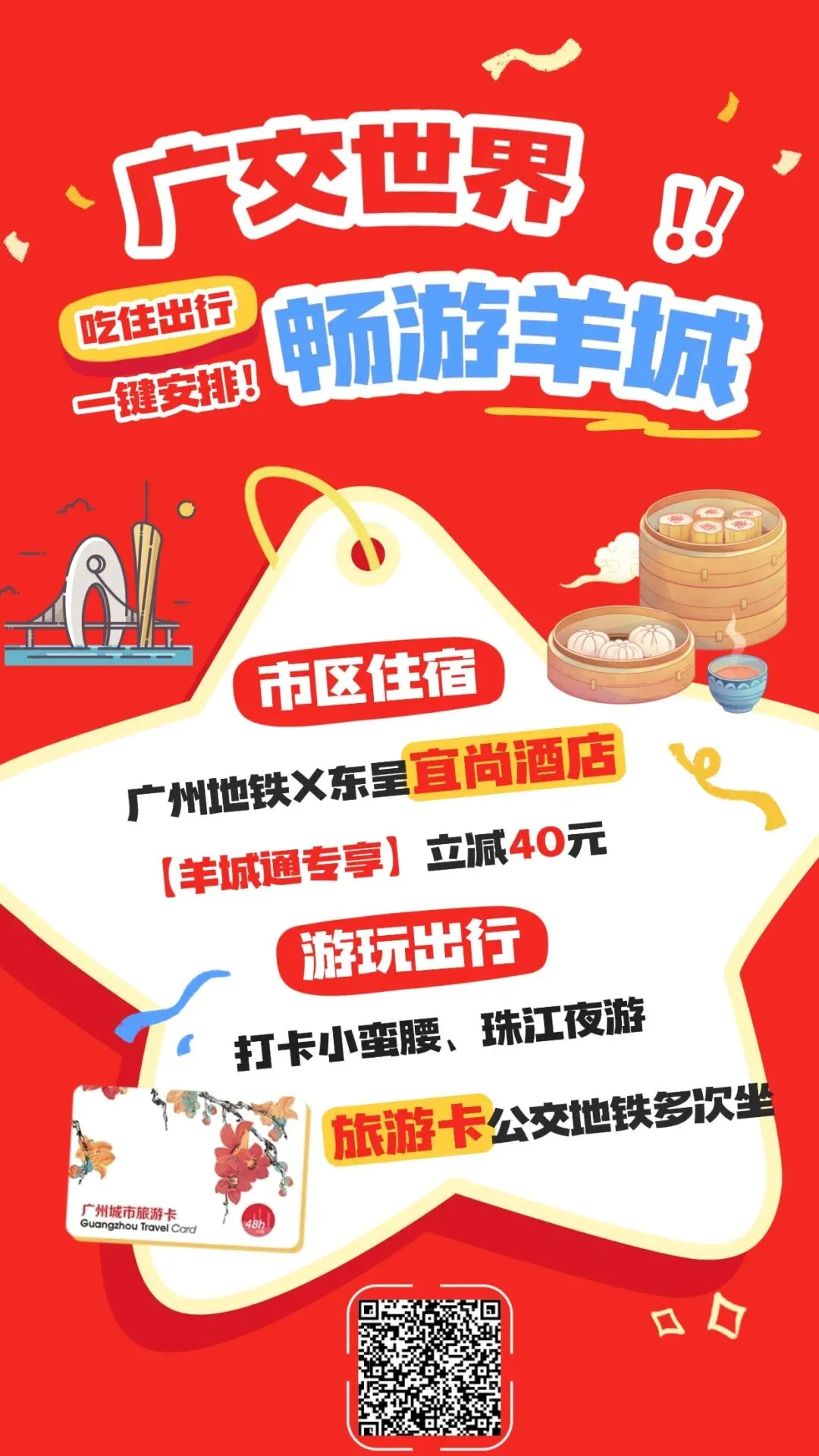 提供24小时、48小时、72小时广州城市旅游卡,有效期内不仅支持多次乘坐广州地铁、公交等公共交通,还能在30余家签约景点、酒店享受专属福利。该卡可在羊城通客服中心、广州旅游问询中心直接购买自取,或通过“羊城通岭南生活”小程序线上购买。