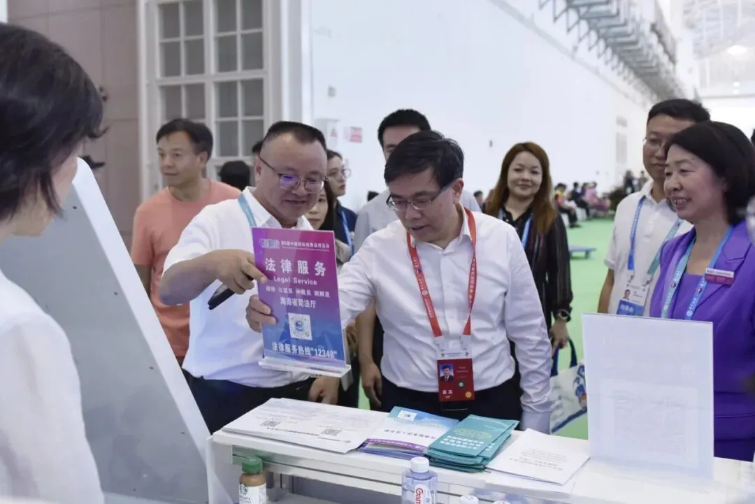 在全球特色消费展区,邱利军亲切看望前来参加法律服务保障工作的新加坡、马来西亚、韩国、中国香港等国家和地区的境外律师代表及部分省内法律服务团人员,并与境外律师代表合影留念。在全球特色消费展区主宾国加拿大和韩国展位,在国货精品展区主宾省(市)上海市和海南省、浙江省等展位,邱利军详细了解展品特色、产销情况及合作意向等,主动询问和倾听参展商法律服务需求。在国货精品展区前台服务处,邱利军实地了解法律服务团人员坐班、巡馆、宣传、咨询、纠纷化解等情况,对法律服务团及法律服务志愿者团队的工作给予肯定。