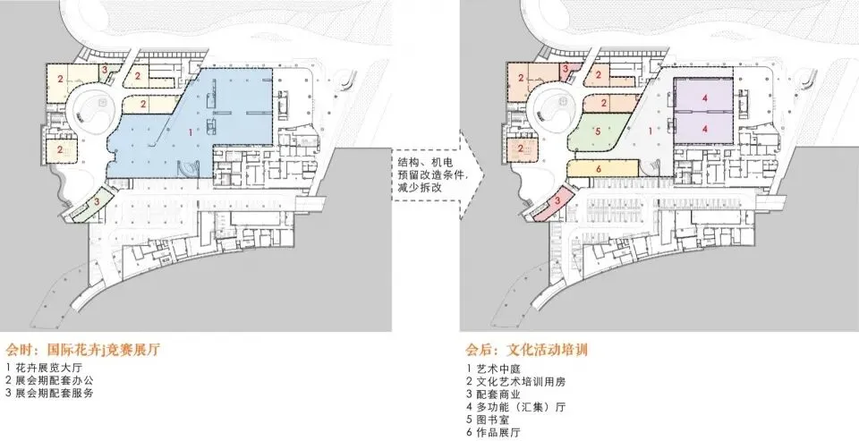 ▲负一层会时会后功能的转换© 中建西南院