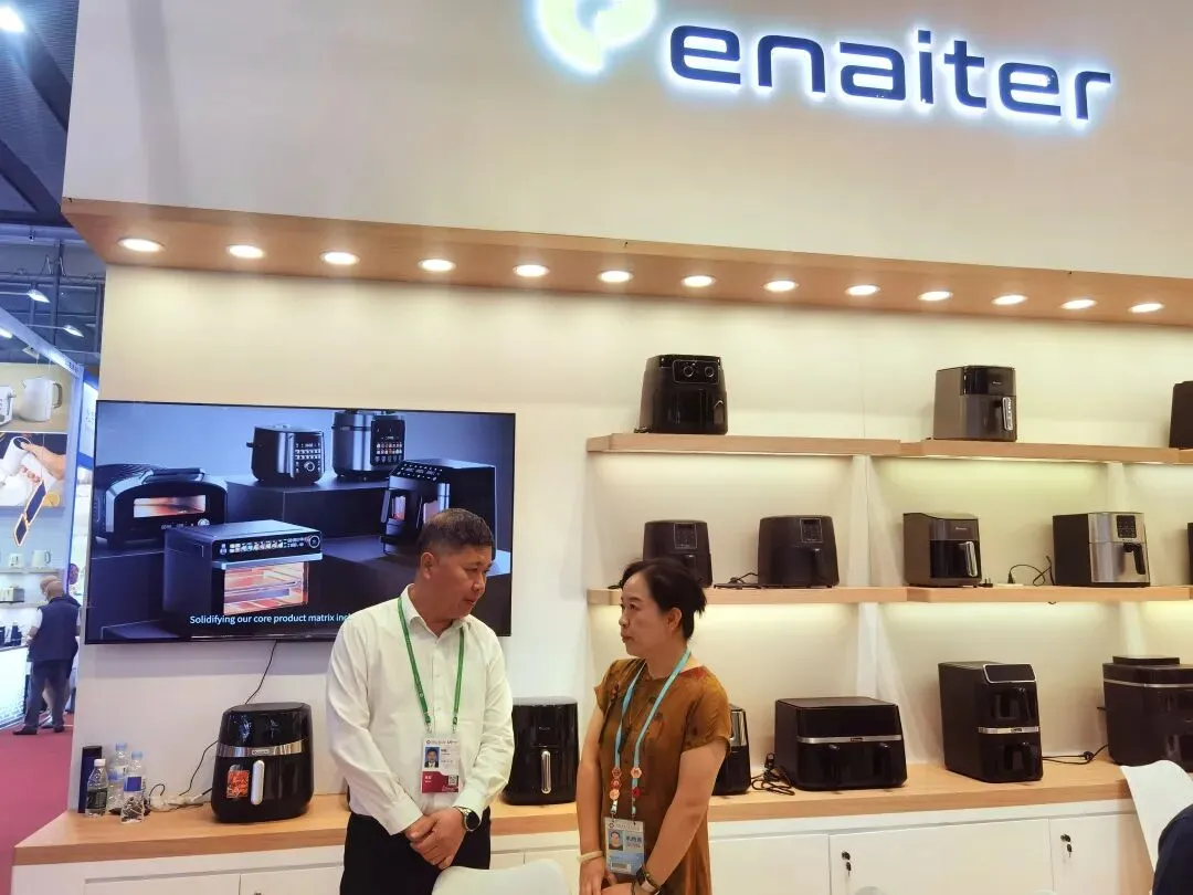 广东伊莱特科技股份有限公司:公司持续拓宽海外版图,本次展会在传统优势品类电饭锅、空气炸锅基础上,全新推出饮水机、咖啡机、手持搅拌机等多款新品,丰富小家电矩阵。开展两日来,企业展位人气持续高涨,每日9点刚开馆便迎来大批海内外专业客商驻足洽谈,咨询热度远超预期,为企业全年外贸稳增长注入强劲动力。