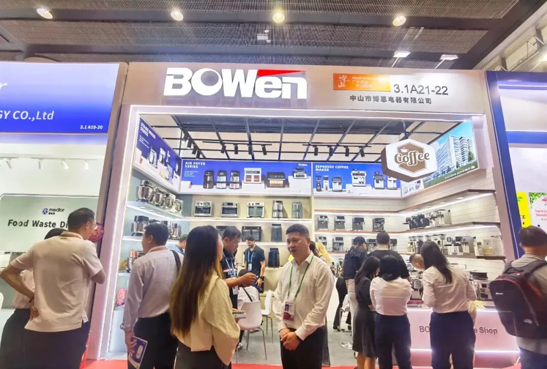 中山市博恩电器有限公司:这次在广交会上可是拿出了爆款新品!专门贴合当下消费者需求,推出了集研磨、奶箱于一体的小巧型咖啡机,机身精致不占地,功能齐全还性价比拉满。展位现场咨询不断,一半以上客商都是新客户咨询。